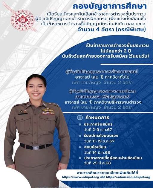 กองบัญชาการศึกษาเปิดรับสมัคร 9 ธันวาคม 2567 โดย thepha / ข่าวประชาสัมพันธ์,ข่าวฝากประชาสัมพันธ์ กองบัญชาการศึกษาเปิดรับสมัคร และคัดเลือกข้าราชการตำรวจชั้นประทวนผู้มีวุฒิปริญญาเอกเข้ารับการฝึกอบรม เพื่อแต่งตั้งเลื่อนขั้นเข้าเป็นข้าราชการตำรวจชั้นสัญญาบัตร ฯ . สามารถศึกษารายละเอียดเพิ่มเติมได้ที่ https://www.edupol.org https://admission.edupol.org ตั้งแต่วันที่ 2 ธันวาคม 2567 เป็นต้นไป . #สำนักงานตำรวจแห่งชาติ #Royalthaipolice