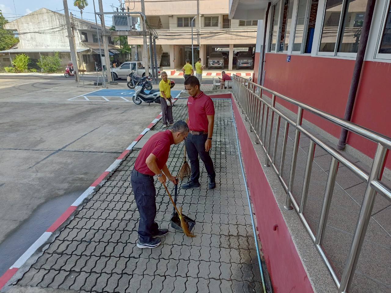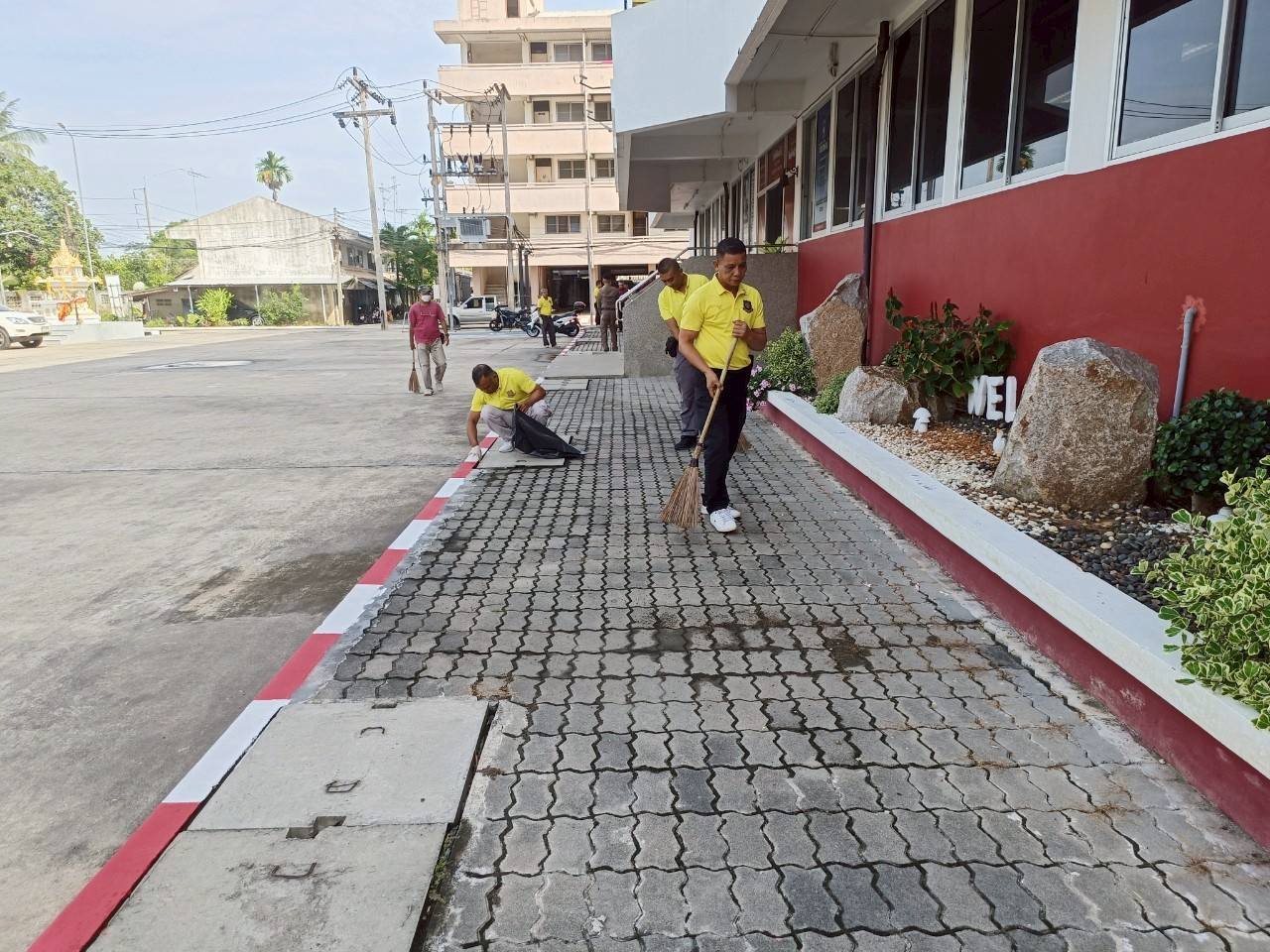 ร่วมประชุมชี้แจงข้าราชการตำรวจ มอบหมายหน้าที่ในความรับผิดชอบ ทำกิจกรรมจิตอาสา ” Big Cleaning Day ” ทำความสะอาด เก็บกวาดขยะ พัฒนาปรับปรุงภูมิทัศน์ รอบ ๆ บริเวณอาคารที่ทำการสถานีตำรวจ ให้มีความสะอาดและเป็นระเบียบเรียบร้อย