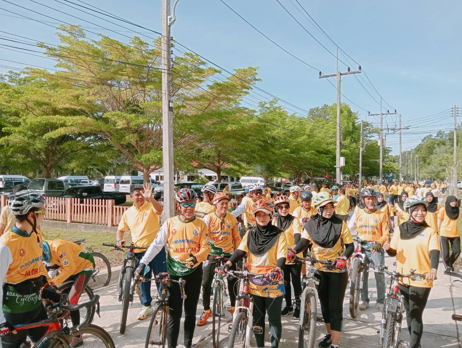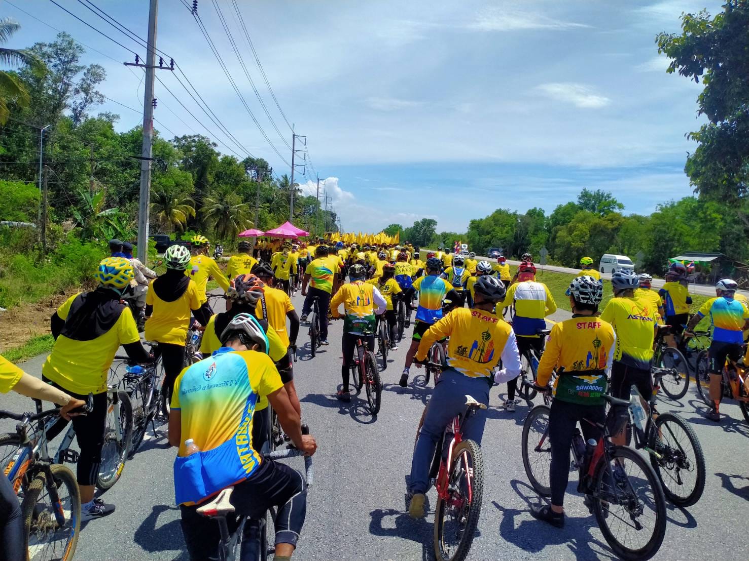 โดยมี นายเอกชัย แก้วรัตนะ นายอำเภอเทพา รับมอบธงตราสัญลักษณ์ฯ นำขบวนไปยังพื้นที่ตำบลบ้านนา อำเภอจะนะ ส่งต่อแก่นายกฤชณัทท พลรัตน์ นายอำเภอจะนะ เพื่อนำเข้าสู่วงเวียนประติมากรรมคนอ่านหนังสือ อำเภอเมืองสงขลา ก่อนจะเคลื่อนขบวนไปยังศาลากลางจังหวัดสงขลา เพื่อนำธงตราสัญลักษณ์งานเฉลิมพระเกียรติฯ ไปประดับไว้ ณ หอประชุมจังหวัดสงขลา ซึ่งมีประชาชนและนักปั่น สวมใส่เสื้อสีเหลืองร่วมขบวน ฯ จำนวนมาก เพื่อแสดงออกถึงความจงรักภักดีและน้อมรำลึกในพระมหากรุณาธิคุณของพระบาทสมเด็จพระเจ้าอยู่หัว