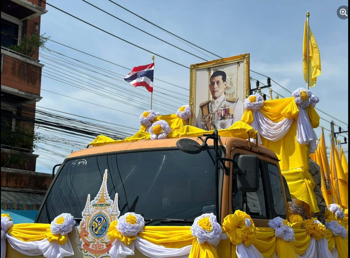 จากนั้น รองผู้ว่าราชการจังหวัดสงขลา เปิดกรวยกระทงดอกไม้ธูปเทียนแพ หน้าพระบรมฉายาลักษณ์พระบาทสมเด็จพระเจ้าอยู่หัว พร้อมกล่าวคำอศิรวาท ถวายพระพรชัยมงคลแด่พระบาทสมเด็จพระเจ้าอยู่หัว เนื่องในโอกาสพระราชพิธีมหามงคลเฉลิมพระชนมพรรษา 6 รอบ 28 กรกฎาคม 2567 ก่อนเชิญธงตราสัญลักษณ์ พร้อมนำขบวนเดิน วิ่ง ปั่น ธงตราสัญลักษณ์ งานเฉลิมพระเกียรติพระบาทสมเด็จพระเจ้าอยู่หัว เนื่องในโอกาสพระราชพิธีมหามงคลเฉลิมพระชนมพรรษา 6 รอบ 28 กรกฎาคม 2567 ไปตามเส้นทางที่กำหนด มุ่งหน้าสู่ศาลากลางจังหวัดสงขลา