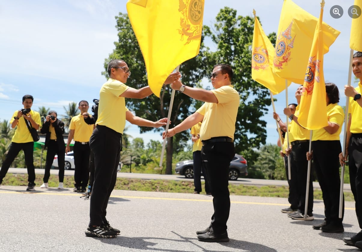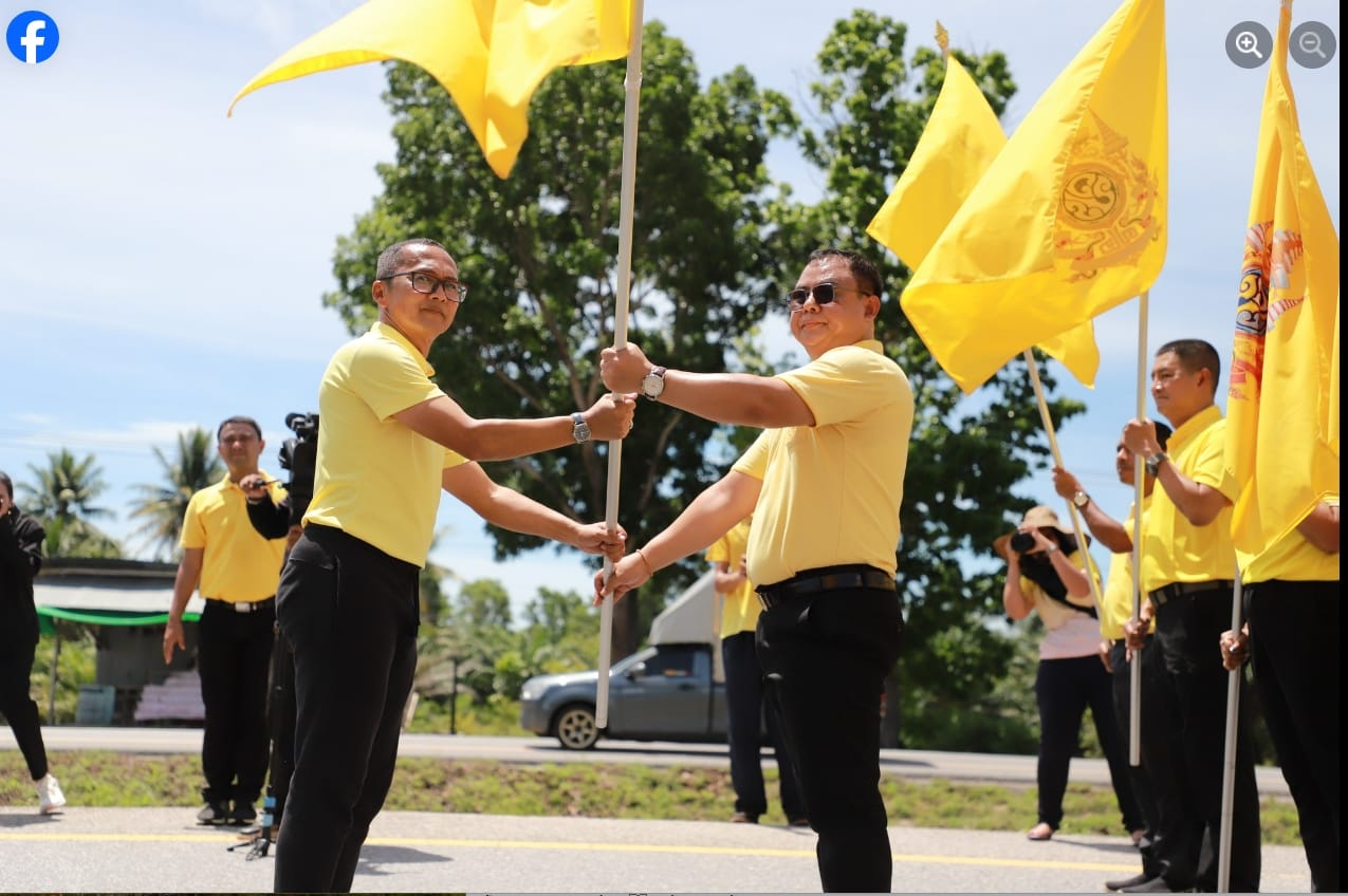 ร่วมรับมอบธงตราสัญลักษณ์ งานเฉลิมพระเกียรติพระบาทสมเด็จพระเจ้าอยู่หัว เนื่องในโอกาสพระราชพิธีมหามงคลเฉลิมพระชนมพรรษา 6 รอบ 28 กรกฎาคม 2567 ต่อจาก นางพาตีเมาะ สะดียามู ผู้ว่าราชการจังหวัดปัตตานี