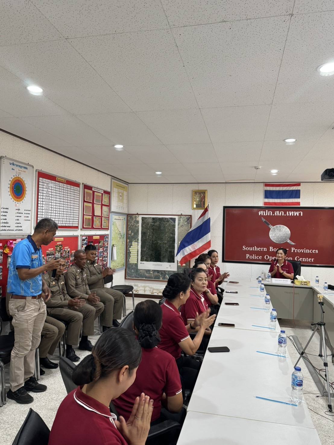 ร่วมต้อนรับ คุณ เสาวพรรณ ชูรังสฤษฎิ์ ประธานแม่บ้านตำรวจภูธรจังหวัดสงขลา พร้อมคณะแม่บ้านฯ เดินทางมอบเงินบำรุงขวัญให้แก่ข้าราชการตำรวจ ที่ได้รับบาดเจ็บจากการปฏิบัติหน้าที่ เหตุระเบิด