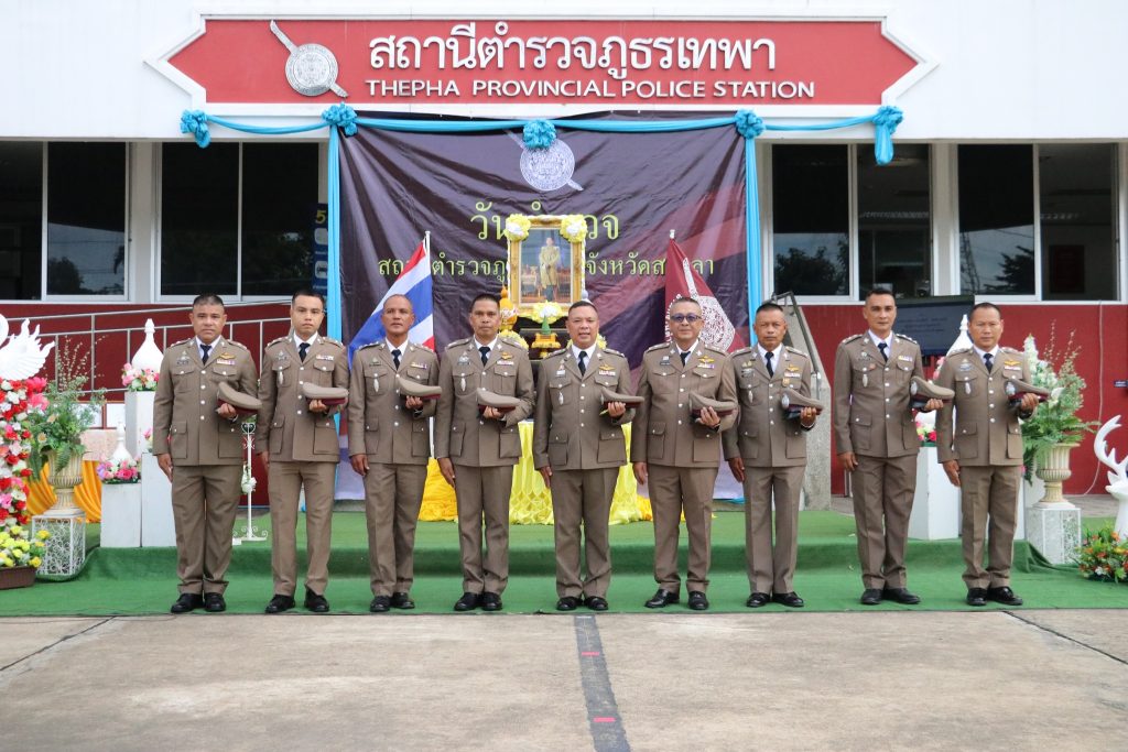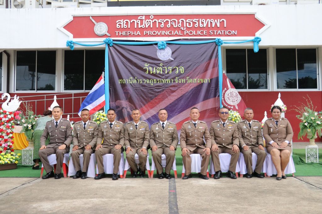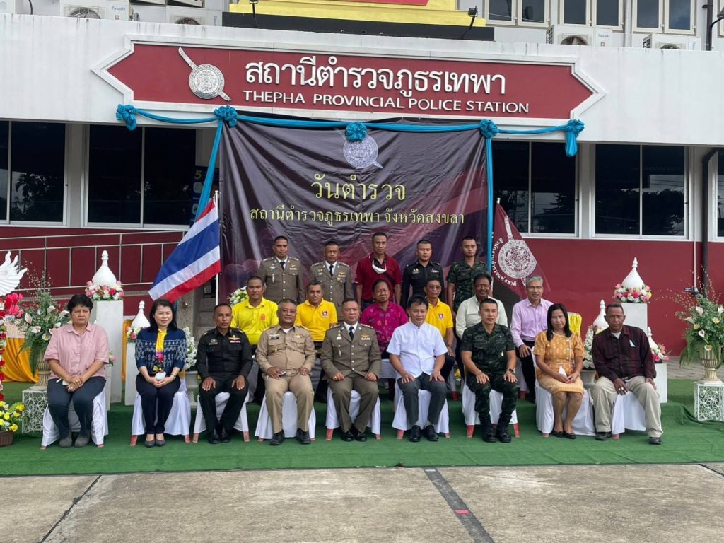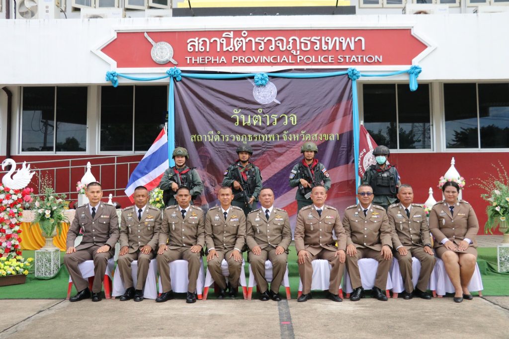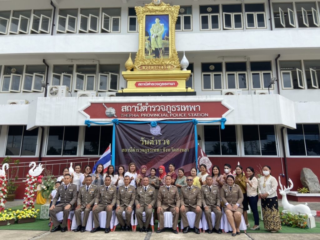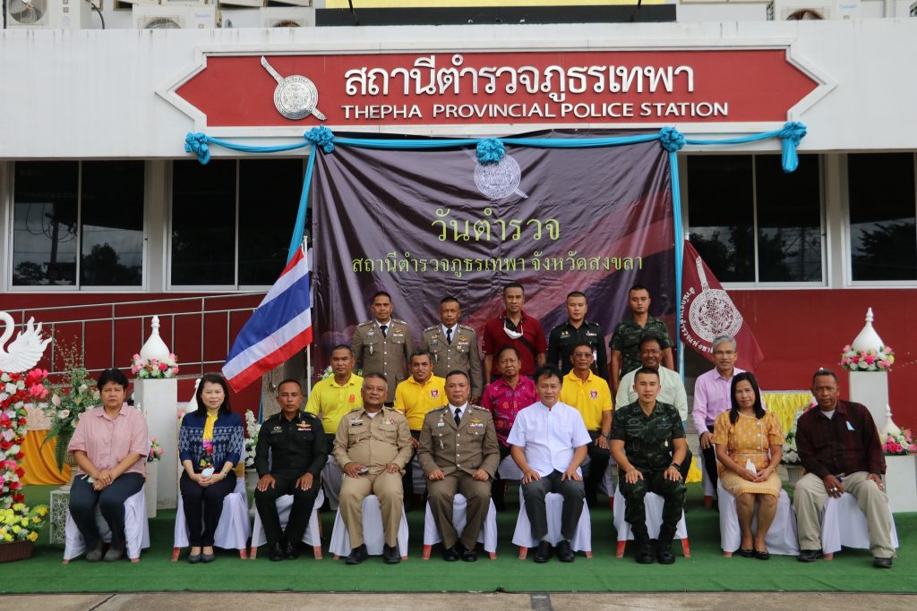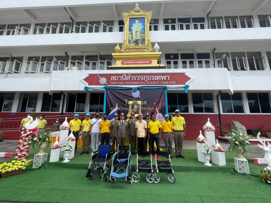 170945 ต.ค. 2565 พ.ต.อ.ธรรมรัตน์ เพชรหนองชุม ผกก.สภ.เทพา ประธานพิธีพิธี อ่านสาร พล.ต.อ.ดำรงศักดิ์ กิตติประภัสร์ ผบ.ตร. เนื่องในโอกาสวันตำรวจ ประจำปี 2565 นำข้าราชการตำรวจกล่าวคำถวายสัตย์ปฏิญาณต่อหน้าพระบรมฉายาลักษณ์พระบาทสมเด็จพระเจ้าอยู่หัว ต่อเนื่องด้วย พิธีมอบประกาศเกียรติคุณให้แก่ผู้ช่วยเหลืองานกิจการตำรวจ สภ.เทพา ดังนี้ 1. นายประยูร หะยีดามัน ผู้ใหญ่บ้าน บ้านท่าฤดี หมู่ 4 ต./อ.เทพา จว.สงขลา 2. นางสุวรรณี คานยู พยาบาลวิชาชีพ รพ.เทพา 3. ผู้แทนจาก บ.โกลบอลกรีนโฮลดิ้ง จำกัด และพิธีมอบอุปกรณ์ช่วยเหลือผู้ป่วย วิลแชร์ จำนวน 4 คัน ให้แก่ 1. นางสมพร แขวงเพชรแก้ว 2. นางมิเน๊าะ มะยิ 3. นางหนูกลิ่น แถบเงิน 4. นายเฉลียว เทพรัตน์ เพื่อเป็นกำลังใจในการดำเนินชีวิตอย่างมีความสุขต่อไป