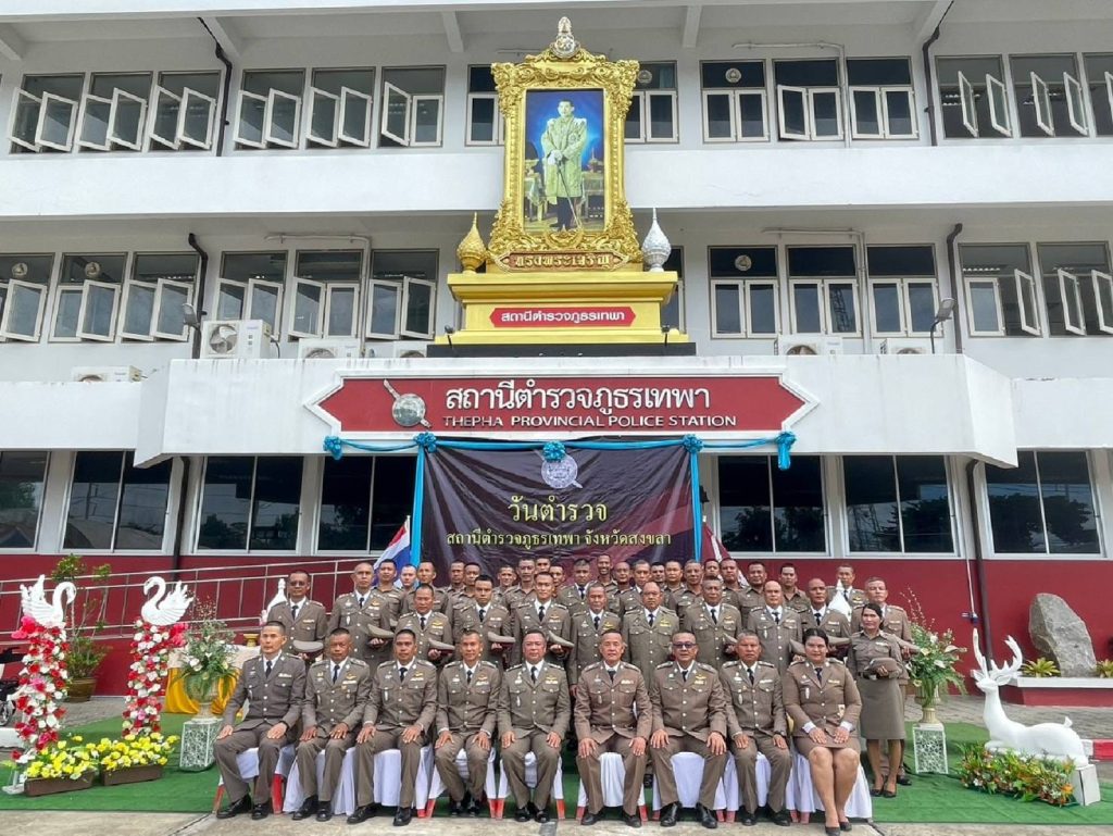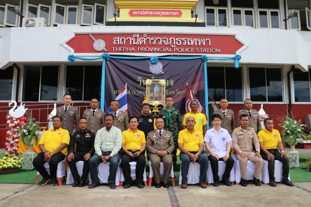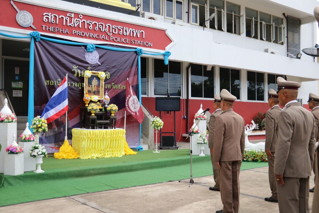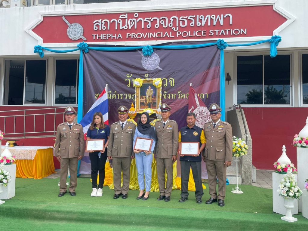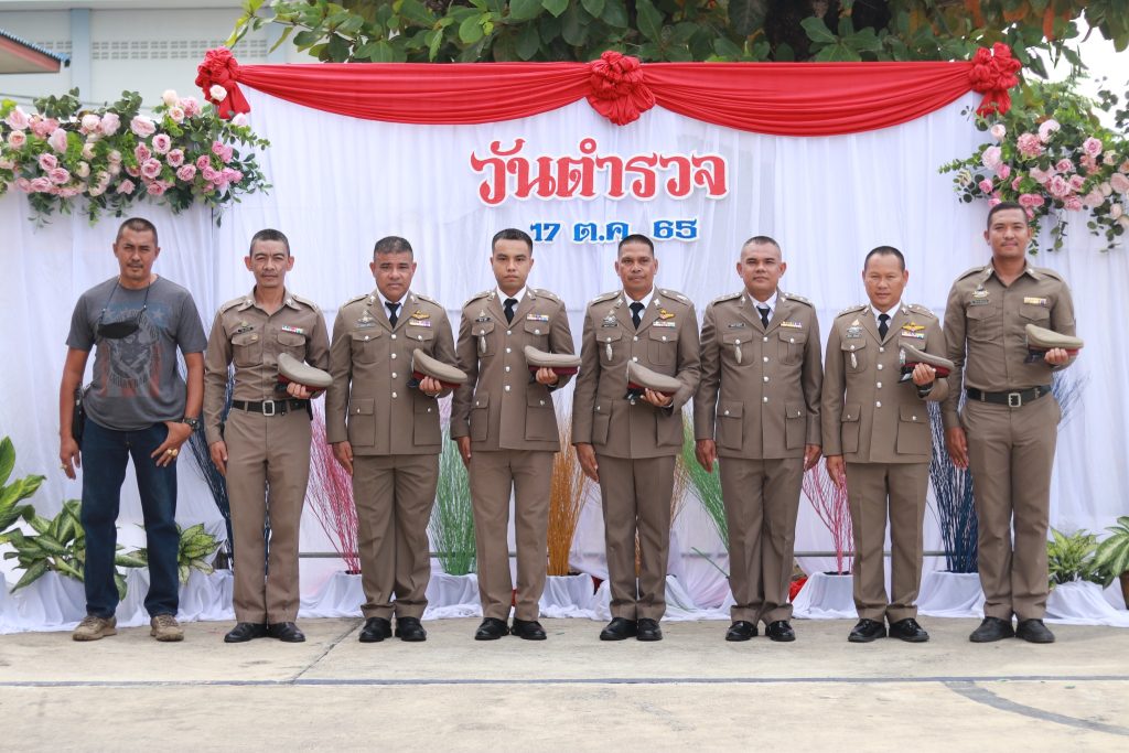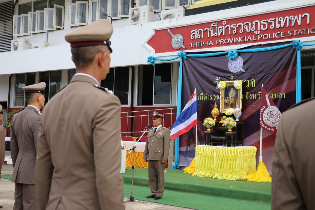 170945 ต.ค. 2565 พ.ต.อ.ธรรมรัตน์ เพชรหนองชุม ผกก.สภ.เทพา ประธานพิธีพิธี อ่านสาร พล.ต.อ.ดำรงศักดิ์ กิตติประภัสร์ ผบ.ตร. เนื่องในโอกาสวันตำรวจ ประจำปี 2565 นำข้าราชการตำรวจกล่าวคำถวายสัตย์ปฏิญาณต่อหน้าพระบรมฉายาลักษณ์พระบาทสมเด็จพระเจ้าอยู่หัว ต่อเนื่องด้วย พิธีมอบประกาศเกียรติคุณให้แก่ผู้ช่วยเหลืองานกิจการตำรวจ สภ.เทพา ดังนี้ 1. นายประยูร หะยีดามัน ผู้ใหญ่บ้าน บ้านท่าฤดี หมู่ 4 ต./อ.เทพา จว.สงขลา 2. นางสุวรรณี คานยู พยาบาลวิชาชีพ รพ.เทพา 3. ผู้แทนจาก บ.โกลบอลกรีนโฮลดิ้ง จำกัด และพิธีมอบอุปกรณ์ช่วยเหลือผู้ป่วย วิลแชร์ จำนวน 4 คัน ให้แก่ 1. นางสมพร แขวงเพชรแก้ว 2. นางมิเน๊าะ มะยิ 3. นางหนูกลิ่น แถบเงิน 4. นายเฉลียว เทพรัตน์ เพื่อเป็นกำลังใจในการดำเนินชีวิตอย่างมีความสุขต่อไป