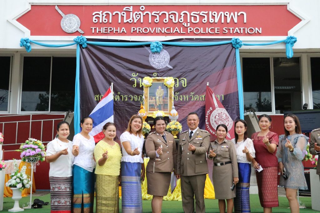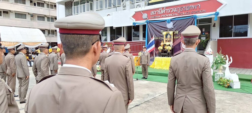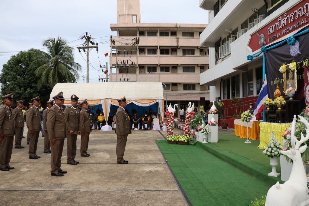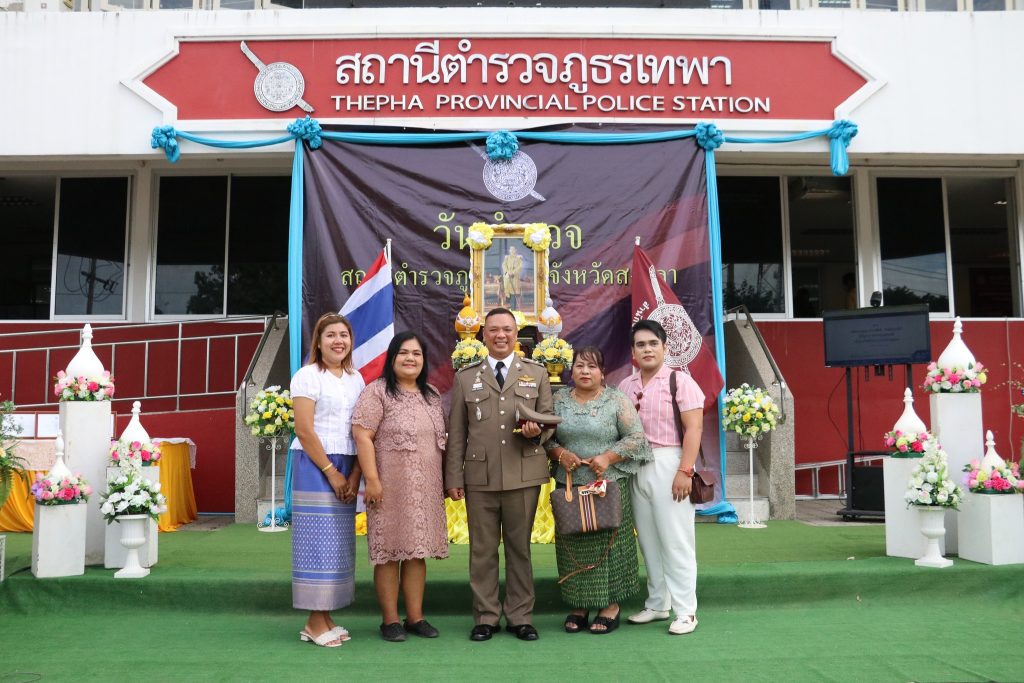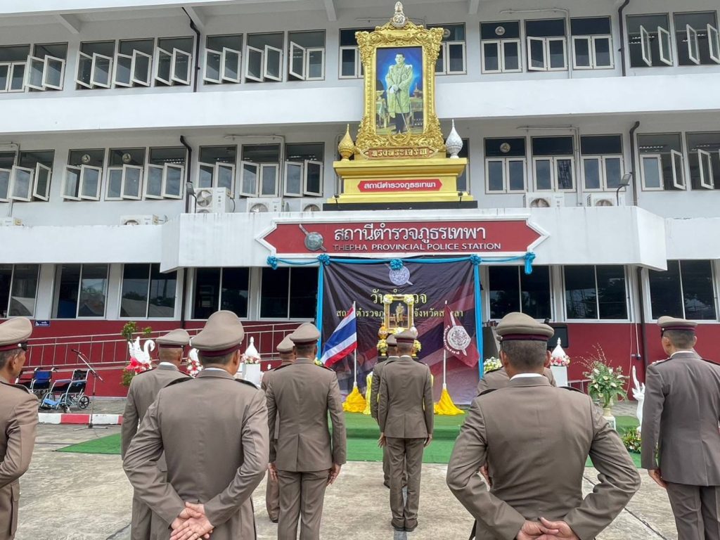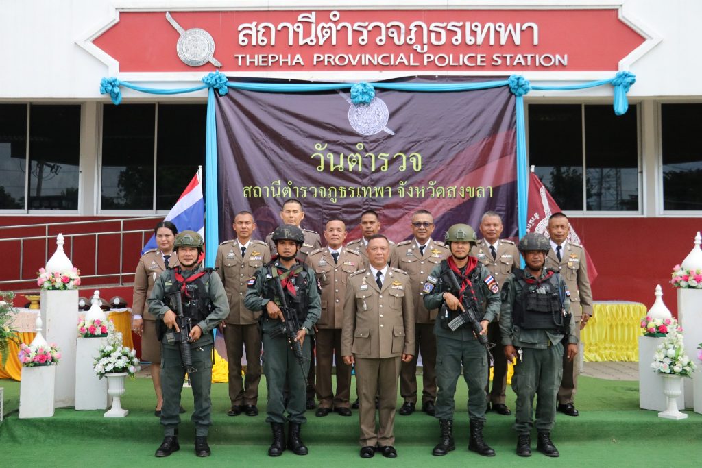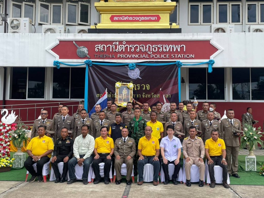 170945 ต.ค. 2565 พ.ต.อ.ธรรมรัตน์ เพชรหนองชุม ผกก.สภ.เทพา ประธานพิธีพิธี อ่านสาร พล.ต.อ.ดำรงศักดิ์ กิตติประภัสร์ ผบ.ตร. เนื่องในโอกาสวันตำรวจ ประจำปี 2565 นำข้าราชการตำรวจกล่าวคำถวายสัตย์ปฏิญาณต่อหน้าพระบรมฉายาลักษณ์พระบาทสมเด็จพระเจ้าอยู่หัว ต่อเนื่องด้วย พิธีมอบประกาศเกียรติคุณให้แก่ผู้ช่วยเหลืองานกิจการตำรวจ สภ.เทพา ดังนี้ 1. นายประยูร หะยีดามัน ผู้ใหญ่บ้าน บ้านท่าฤดี หมู่ 4 ต./อ.เทพา จว.สงขลา 2. นางสุวรรณี คานยู พยาบาลวิชาชีพ รพ.เทพา 3. ผู้แทนจาก บ.โกลบอลกรีนโฮลดิ้ง จำกัด และพิธีมอบอุปกรณ์ช่วยเหลือผู้ป่วย วิลแชร์ จำนวน 4 คัน ให้แก่ 1. นางสมพร แขวงเพชรแก้ว 2. นางมิเน๊าะ มะยิ 3. นางหนูกลิ่น แถบเงิน 4. นายเฉลียว เทพรัตน์ เพื่อเป็นกำลังใจในการดำเนินชีวิตอย่างมีความสุขต่อไป