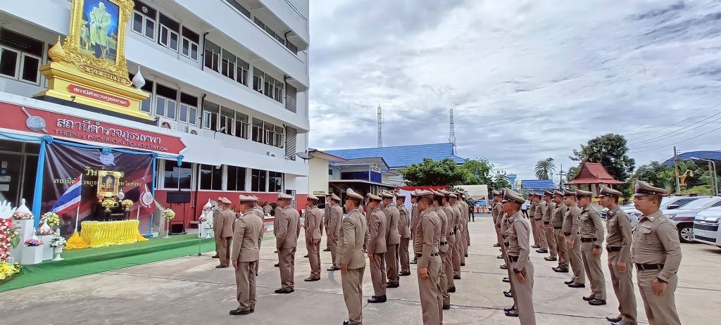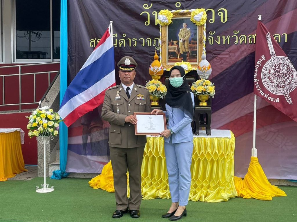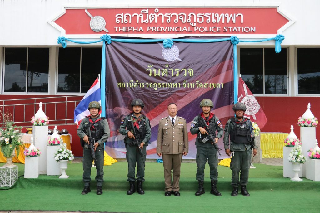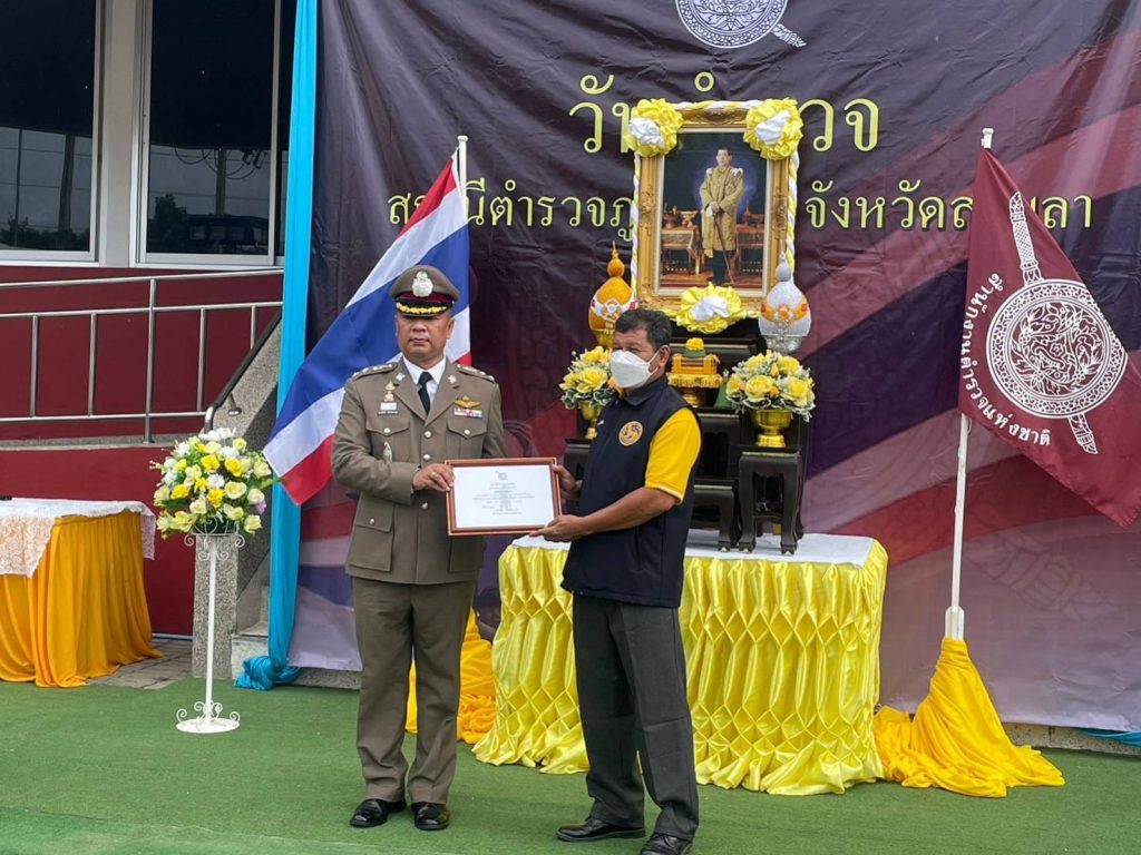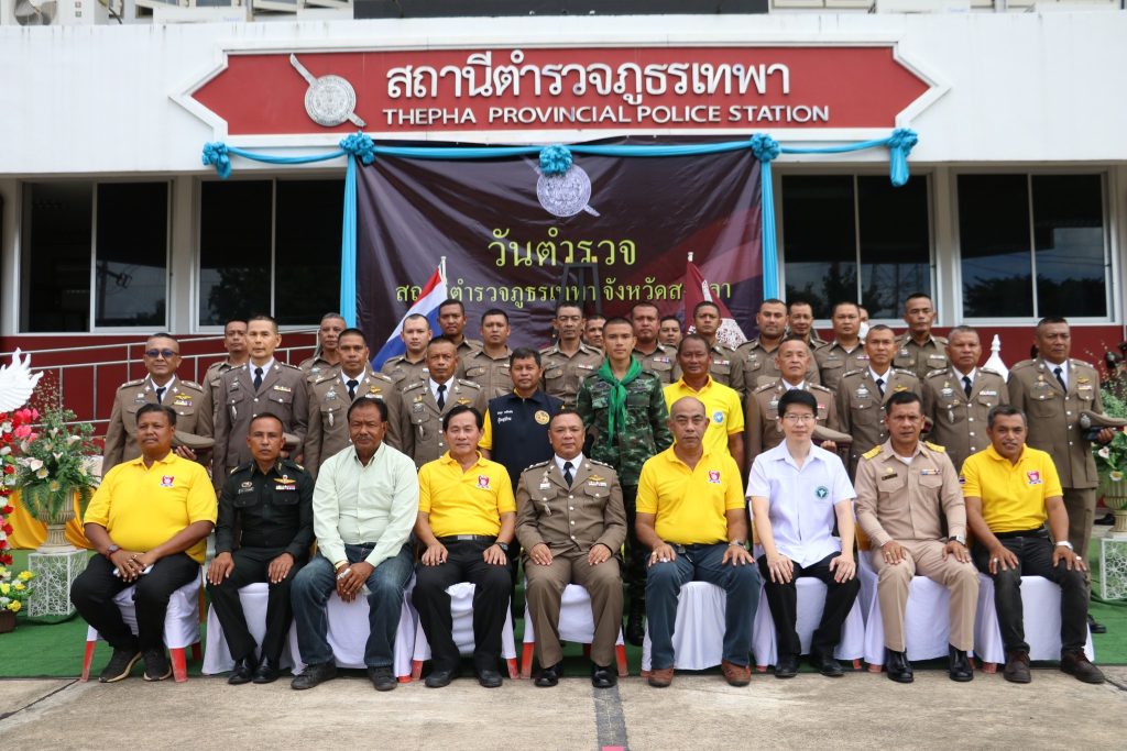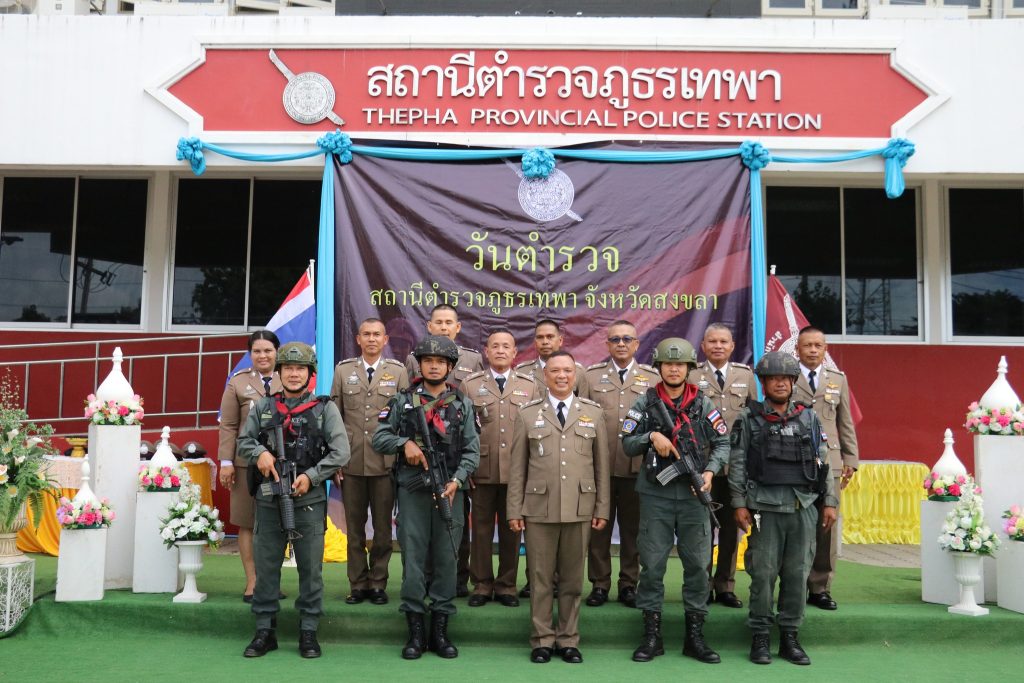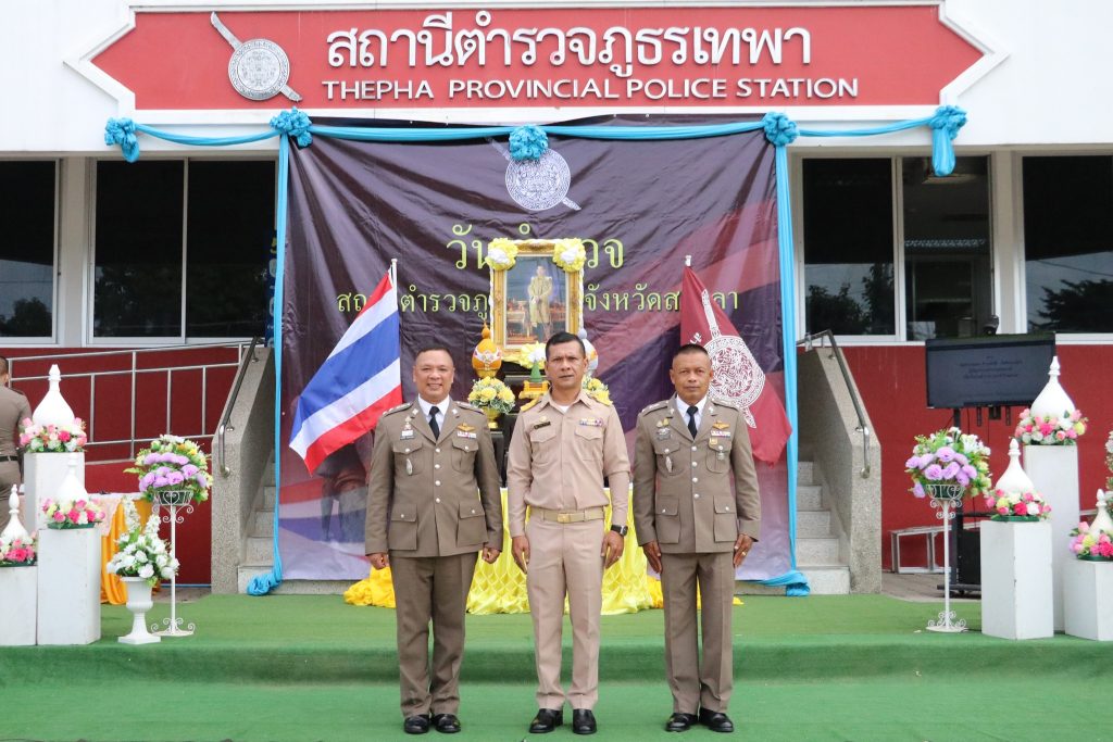 170945 ต.ค. 2565 พ.ต.อ.ธรรมรัตน์ เพชรหนองชุม ผกก.สภ.เทพา ประธานพิธีพิธี อ่านสาร พล.ต.อ.ดำรงศักดิ์ กิตติประภัสร์ ผบ.ตร. เนื่องในโอกาสวันตำรวจ ประจำปี 2565 นำข้าราชการตำรวจกล่าวคำถวายสัตย์ปฏิญาณต่อหน้าพระบรมฉายาลักษณ์พระบาทสมเด็จพระเจ้าอยู่หัว ต่อเนื่องด้วย พิธีมอบประกาศเกียรติคุณให้แก่ผู้ช่วยเหลืองานกิจการตำรวจ สภ.เทพา ดังนี้ 1. นายประยูร หะยีดามัน ผู้ใหญ่บ้าน บ้านท่าฤดี หมู่ 4 ต./อ.เทพา จว.สงขลา 2. นางสุวรรณี คานยู พยาบาลวิชาชีพ รพ.เทพา 3. ผู้แทนจาก บ.โกลบอลกรีนโฮลดิ้ง จำกัด และพิธีมอบอุปกรณ์ช่วยเหลือผู้ป่วย วิลแชร์ จำนวน 4 คัน ให้แก่ 1. นางสมพร แขวงเพชรแก้ว 2. นางมิเน๊าะ มะยิ 3. นางหนูกลิ่น แถบเงิน 4. นายเฉลียว เทพรัตน์ เพื่อเป็นกำลังใจในการดำเนินชีวิตอย่างมีความสุขต่อไป