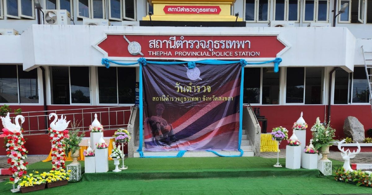 170945 ต.ค. 2565 พ.ต.อ.ธรรมรัตน์ เพชรหนองชุม ผกก.สภ.เทพา ประธานพิธีพิธี อ่านสาร พล.ต.อ.ดำรงศักดิ์ กิตติประภัสร์ ผบ.ตร. เนื่องในโอกาสวันตำรวจ ประจำปี 2565 นำข้าราชการตำรวจกล่าวคำถวายสัตย์ปฏิญาณต่อหน้าพระบรมฉายาลักษณ์พระบาทสมเด็จพระเจ้าอยู่หัว ต่อเนื่องด้วย พิธีมอบประกาศเกียรติคุณให้แก่ผู้ช่วยเหลืองานกิจการตำรวจ สภ.เทพา ดังนี้ 1. นายประยูร หะยีดามัน ผู้ใหญ่บ้าน บ้านท่าฤดี หมู่ 4 ต./อ.เทพา จว.สงขลา 2. นางสุวรรณี คานยู พยาบาลวิชาชีพ รพ.เทพา 3. ผู้แทนจาก บ.โกลบอลกรีนโฮลดิ้ง จำกัด และพิธีมอบอุปกรณ์ช่วยเหลือผู้ป่วย วิลแชร์ จำนวน 4 คัน ให้แก่ 1. นางสมพร แขวงเพชรแก้ว 2. นางมิเน๊าะ มะยิ 3. นางหนูกลิ่น แถบเงิน 4. นายเฉลียว เทพรัตน์ เพื่อเป็นกำลังใจในการดำเนินชีวิตอย่างมีความสุขต่อไป
