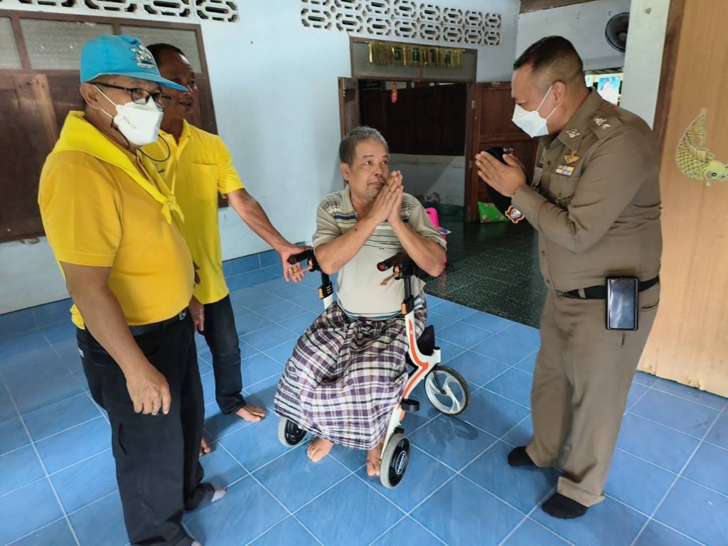 181000 ต.ค. 2565 พ.ต.อ.ธรรมรัตน์ เพชรหนองชุม ผกก.สภ.เทพา พร้อมด้วยตำราจชุมชนสัมพันธ์ ตำรวจจิตอาสา ร่วมกับ นายสมุทร แก้วเกาะสะบ้า ผู้ใหญ่บ้าน บ้านวังเลียบ หมู่ 8 ต.เกาะสะบ้า อ.เทพา จว.สงขลา และประชาชนในพื้นที่ ได้ร่วมพบปะเยี่ยมเยียนผู้ป่วยติดเตียงและผู้ทีมีความทุพลภาพทางกาย มอบอุปกรณ์ทางการแพทย์ (รถเข็นวิลแชร์และรถวอร์ดแชร์) จำนวน 3 คัน เพื่อช่วยเหลือบรรเทาความเดือดร้อนและเป็นกำลังใจในการดำเนินชีวิตประจำวัน
