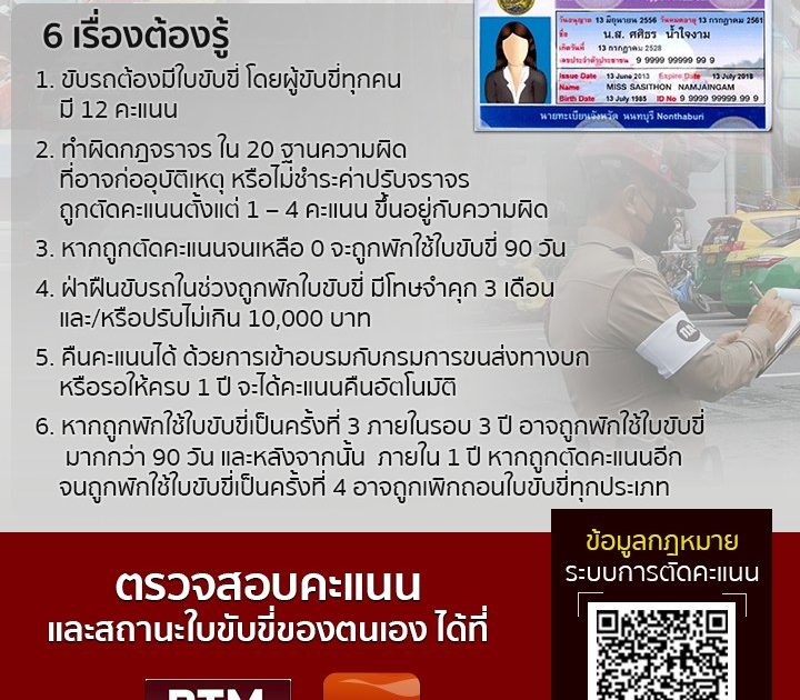 1.ขับรถต้องมีใบขับขี่ โดยผู้ขับขี่ทุกคน มี 12 คะแนน