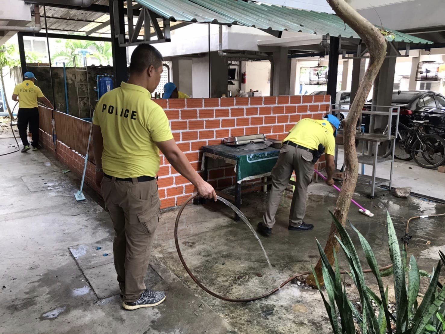 ร่วมทำกิจกรรม จิตอาสา เราทำความ ดี ด้วยหัวใจ (Big Cleaning Day) บำเพ็ญประโยชน์ ทำความสะอาด เก็บกวาดขยะ ถูพื้น บริเวณภายในและภายนอกโดยรอบอาคารที่ทำการ รวมทั้งบริเวณท่อน้ำทิ้งบริเวณครัวสวัสดิการอาหารกลางวันประจำ สภ.ฯ เพื่อความสะอาดถูกต้องตามระเบียบ ของ ตร.