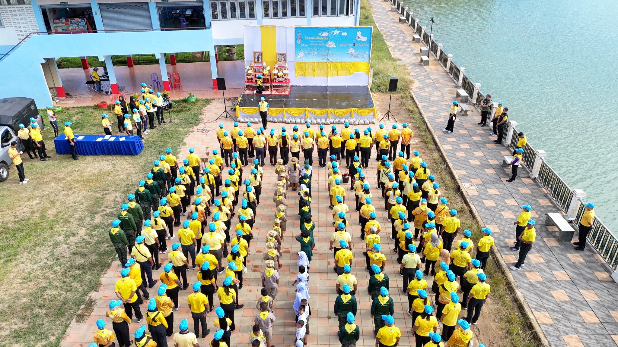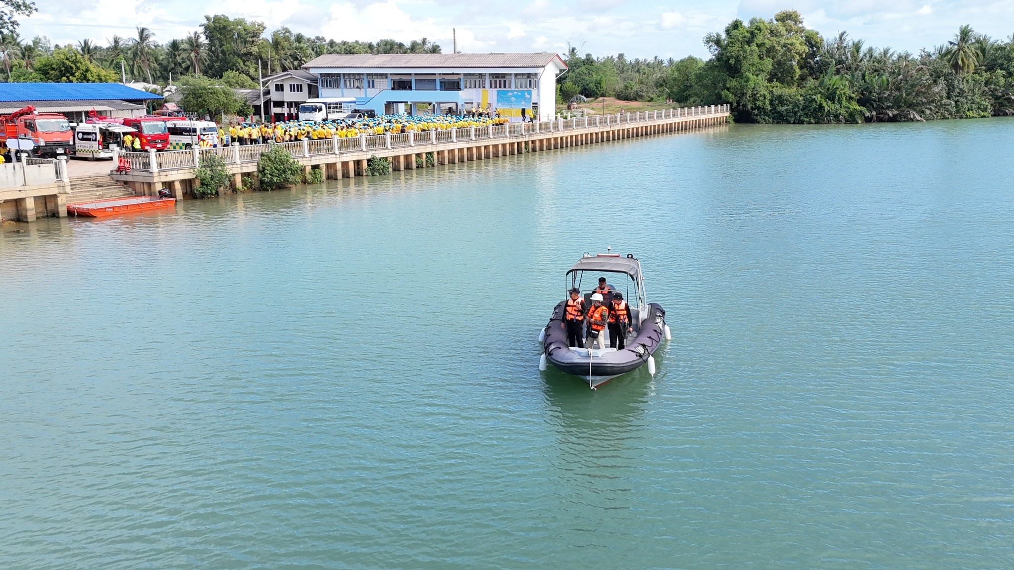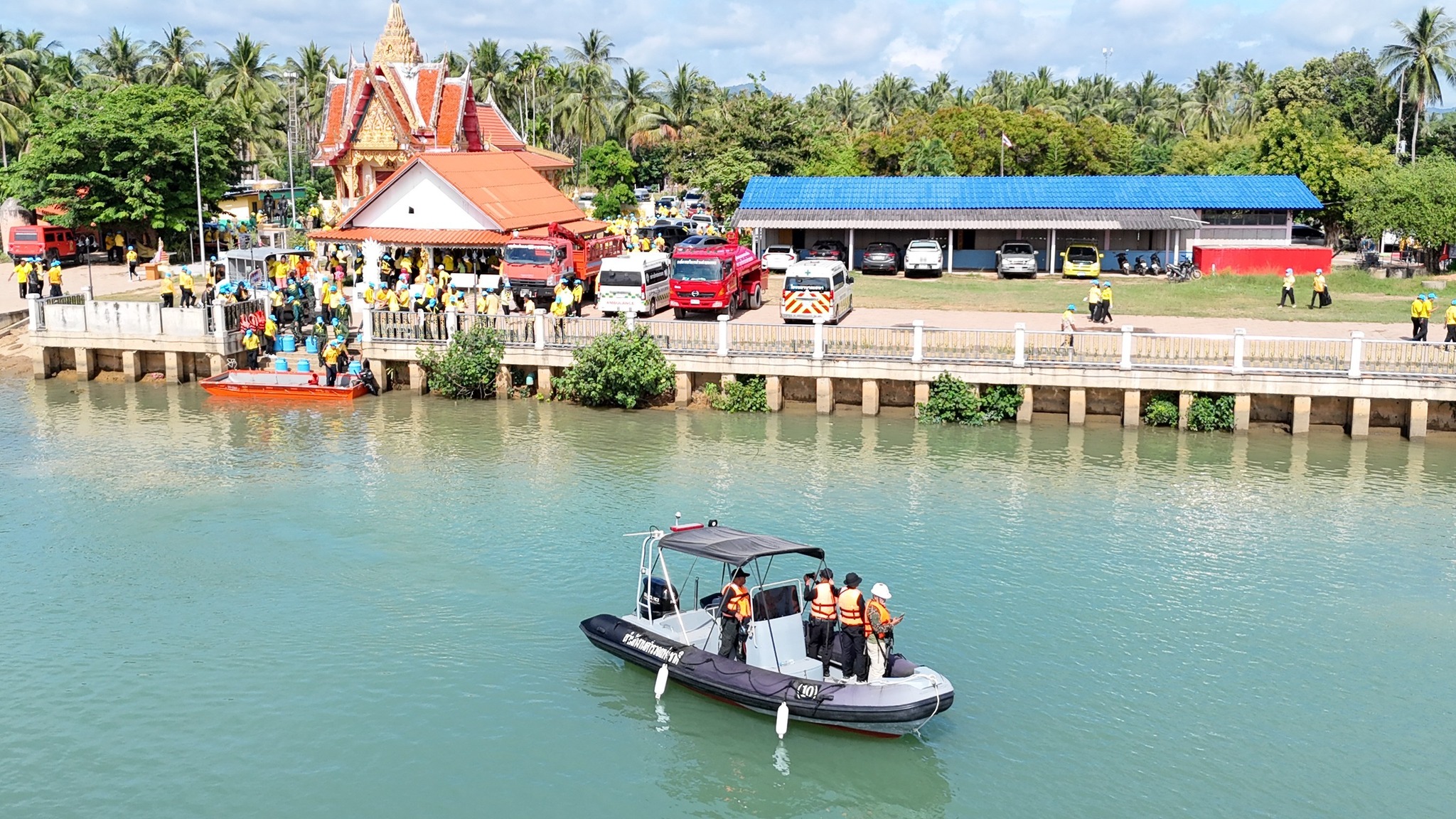 พร้อมด้วยกำลังตำรวจชุดรักษาความปลอดภัยตามลำน้ำด้วยเรือตรวจการณ์ ตำรวจสายตรวจ จราจร ตำรวจชุมชนมวลชนสัมพันธ์ ข้าราชการและแม่บ้านตำรวจจิตอาสา ร่วมกับหัวหน้า/ผู้แทนจากส่วนราชการ ผู้นำท้องถิ่น ประชาชน และเยาวชนในพื้นที่