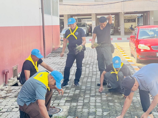 ร่วมทำกิจกรรมจิตอาสาพัฒนาสถานที่ ปรับปรุงทำความสะอาดอาคารและบริเวณ ณ อาคารที่ทำการสถานีตำรวจภูธรเทพา