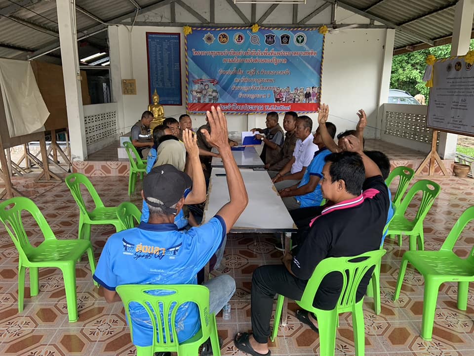 ร่วมกับ นายดนัย ใจเย็น กำนันตำบลเกาะสะบ้า ผู้นำชุมชน คณะกรรมการคุ้ม ประชุมเพื่อติดตามความคืบหน้าในการดำเนินงานตามกรอบระยะเวลาการตรวจคัดกรอง X Ray เพื่อค้นหากลุ่มเป้าหมาย โดยผ่านกระบวนการการทำประชามติของชุมชนและผลการตรวจปัสสาวะของกลุ่มเป้าหมาย เพื่อเข้าสู่กระบวนการบำบัดฟื้นฟูและแก้ปัญหายาเสพติดแบบครบวงจร ตาม โครงการชุมบำบัดอย่างยั่งยืน ในพื้นที่แพร่ระบาดยาเสพติด ตามนโยบายเร่งด่วนของรัฐบาล ในหมู่บ้านเป้าหมาย