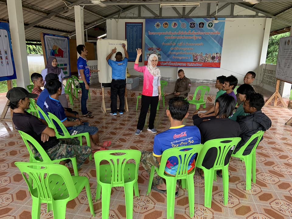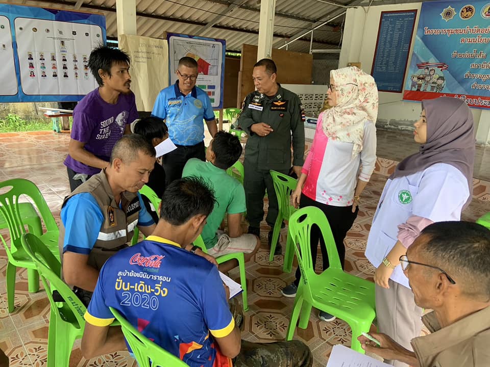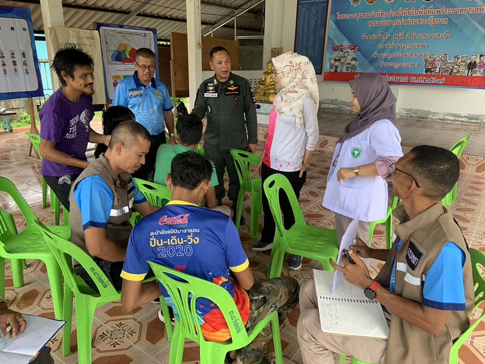 ร่วมกับ นางสุวรรณี คานยู เจ้าหน้าที่พยาบาลชำนาญการพิเศษ และนักจิตวิทยา นายดนัย ใจเย็น กำนัน ต.เกาะสะบ้า คณะกรรมการชุมชน กรรมการคุ้ม