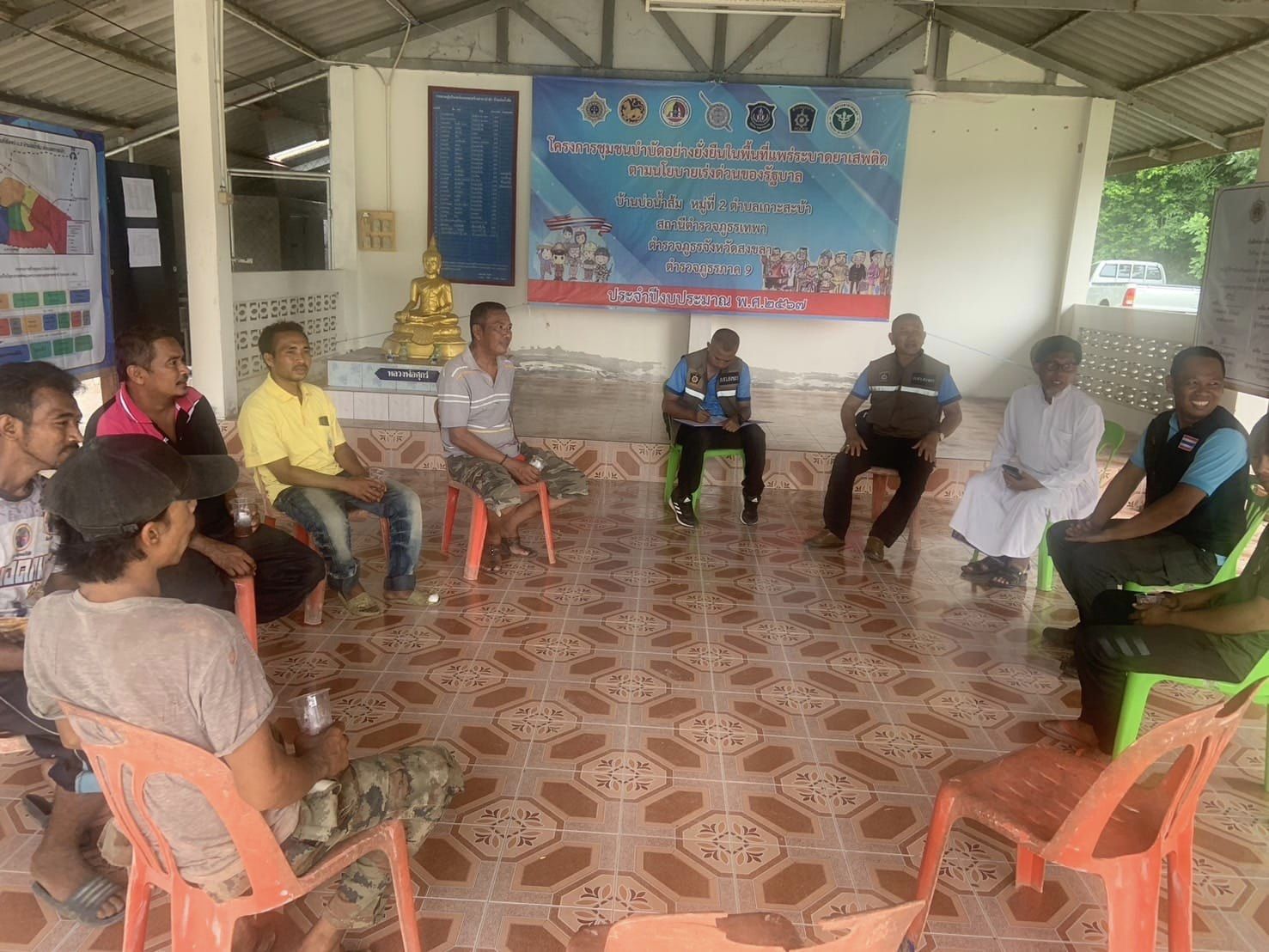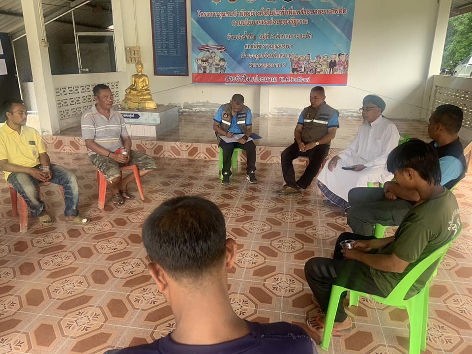 ร่วมกับ คณะกรรมการชุมชน กรรมการคุ้ม พบปะพูดคุยทำความเข้าใจ การกำหนด กฎ กติกา ตามมติของการพูดคุยด้วยการรับฟังความคิดเห็นของกลุ่มเยาวชนเป้าหมายซึ่งเข้าร่วมกิจกรรมการตรวจคัดกรอง X Ray เพื่อเข้าสู่กระบวนการบำบัดฟื้นฟูและแก้ปัญหายาเสพติดแบบครบวงจร ตาม โครงการชุมบำบัดอย่างยั่งยืน ในพื้นที่แพร่ระบาดยาเสพติด ตามนโยบายเร่งด่วนของรัฐบาล ในหมู่บ้านเป้าหมาย