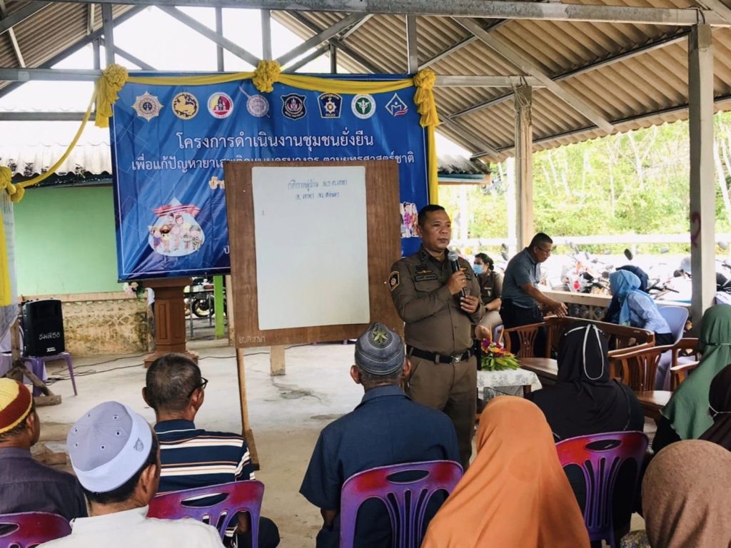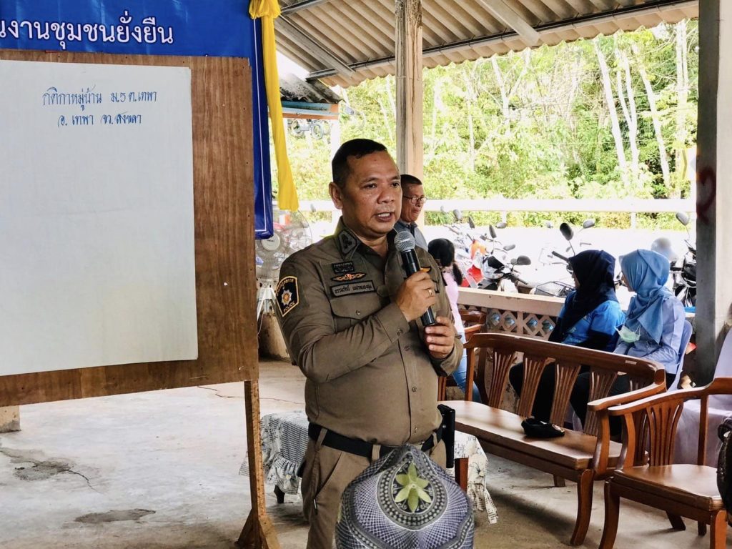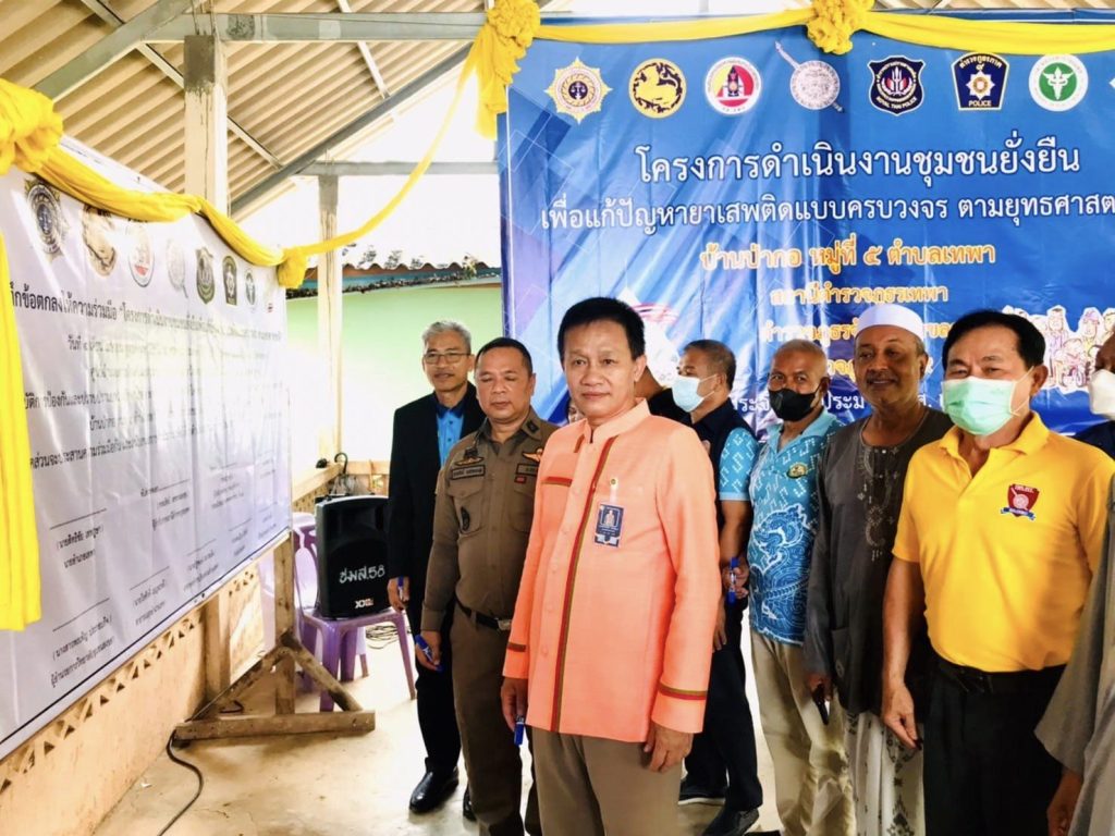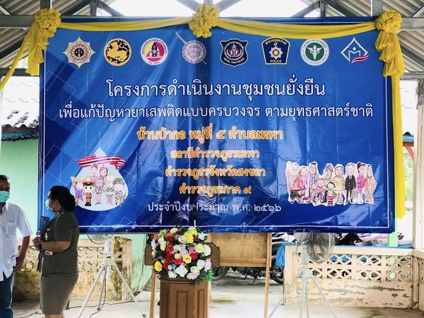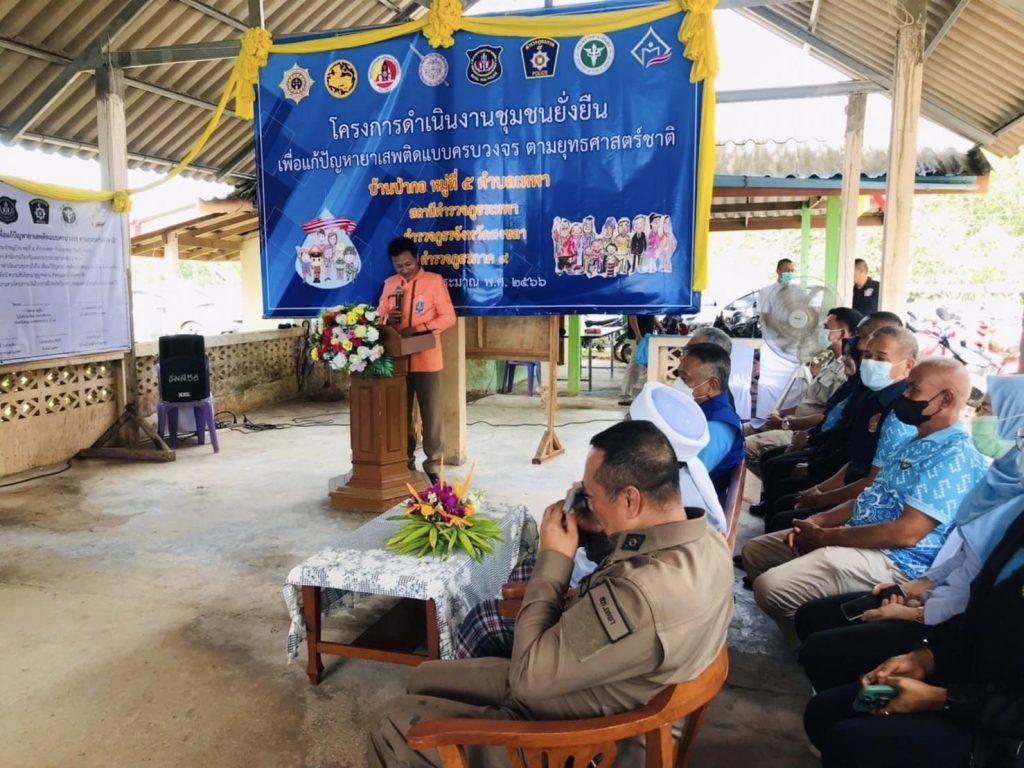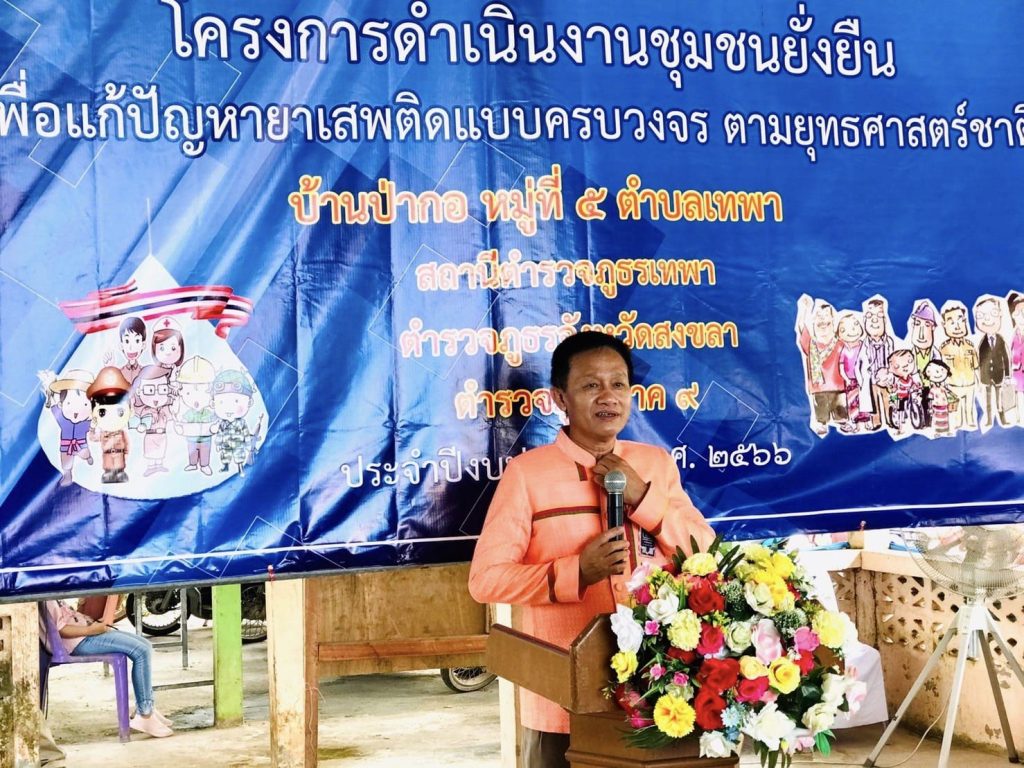 เมื่อวันที่ 5 เม.ย. 2566 เวลา 14.00 น. พ.ต.อ.ธรรมรัตน์ เพชรหนองชุม ผกก.สภ.เทพา พร้อมด้วย พ.ต.ท.สุรเดช เส็นยีหีม รอง ผกก.ป.สภ.เทพา , พ.ต.ท.นิติ ทองชูช่วย สวป.สภ.เทพา , พ.ต.ต.หญิง รัตณา มะหันตะกิจ สว.อก.สภ.เทพา , ชุดปฏิบัติการชุมชนยั่งยืน ผู้แทนจากหน่วยงานราชการ และผู้นำเขตชุมชน ตลอดถึงประชาชนในพื้นที่ ร่วมดำเนินกาาตามโครงการชุมชนยั่งยืน เพื่อแก้ไขปัญหายาเสพติด แบบครบวงจรตามยุทธศาสตร์ชาติ ในหมู่บ้านเป้าหมาย ณ ศาลาอเนกประสงค์ บ้านป่ากอ หมู่ 5 ต.เทพา อ.เทพา จว.สงขลา โดยมี นายสิทธิชัย เทพภูษา นายอำเภอเทพา เป็นประธาน