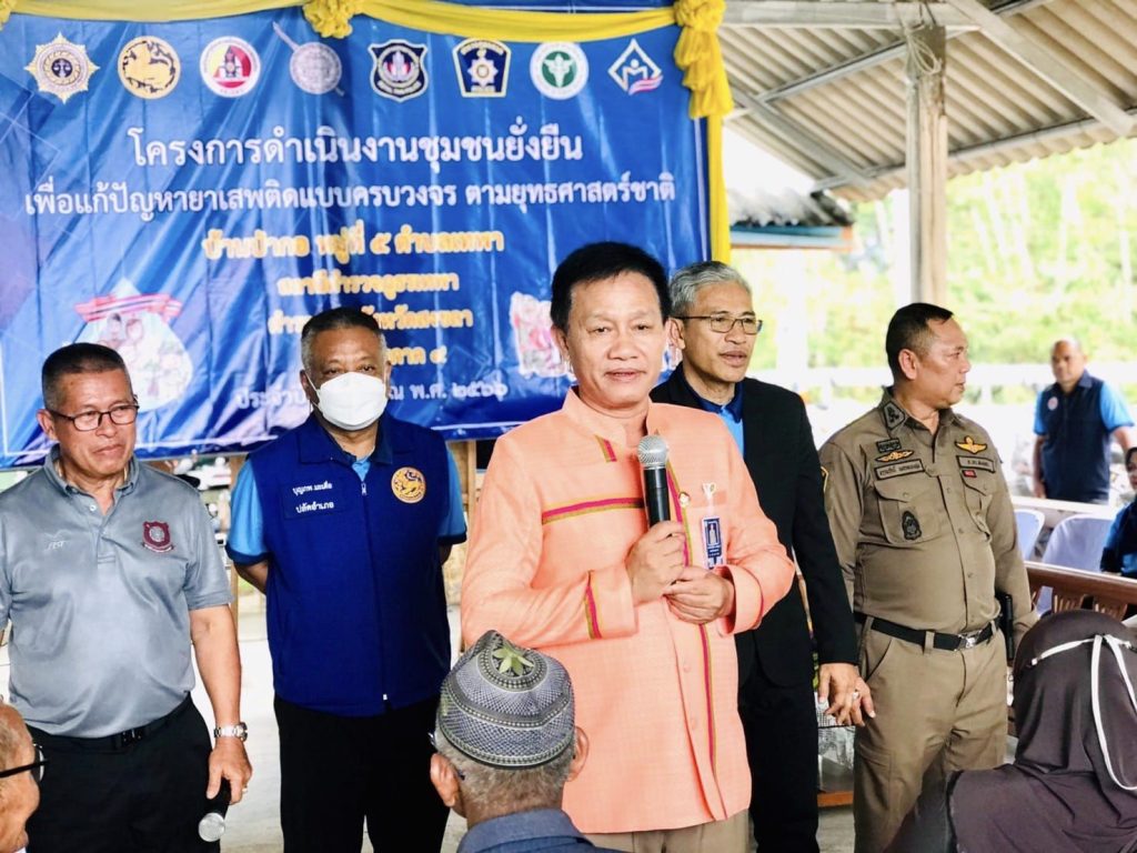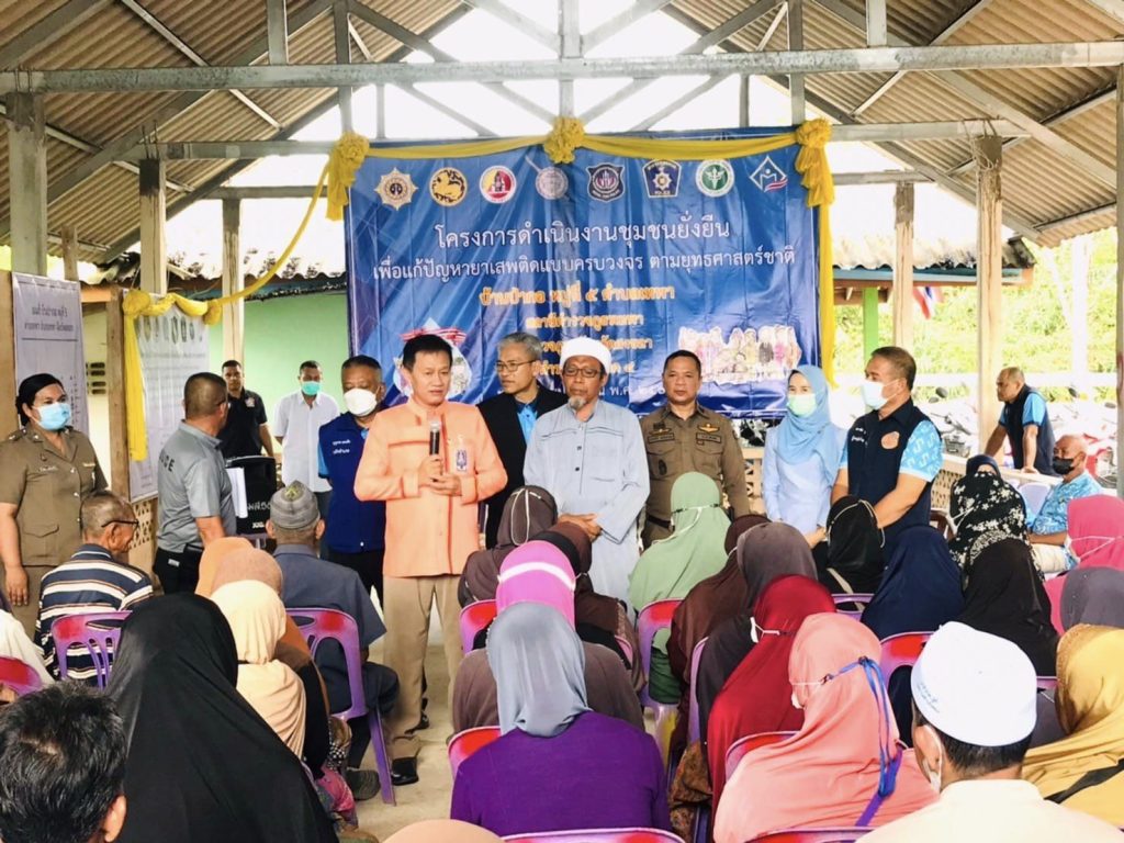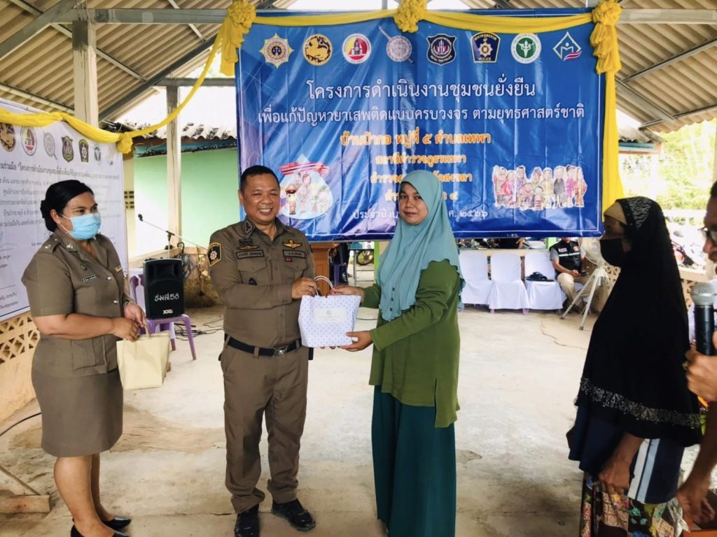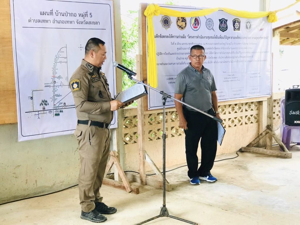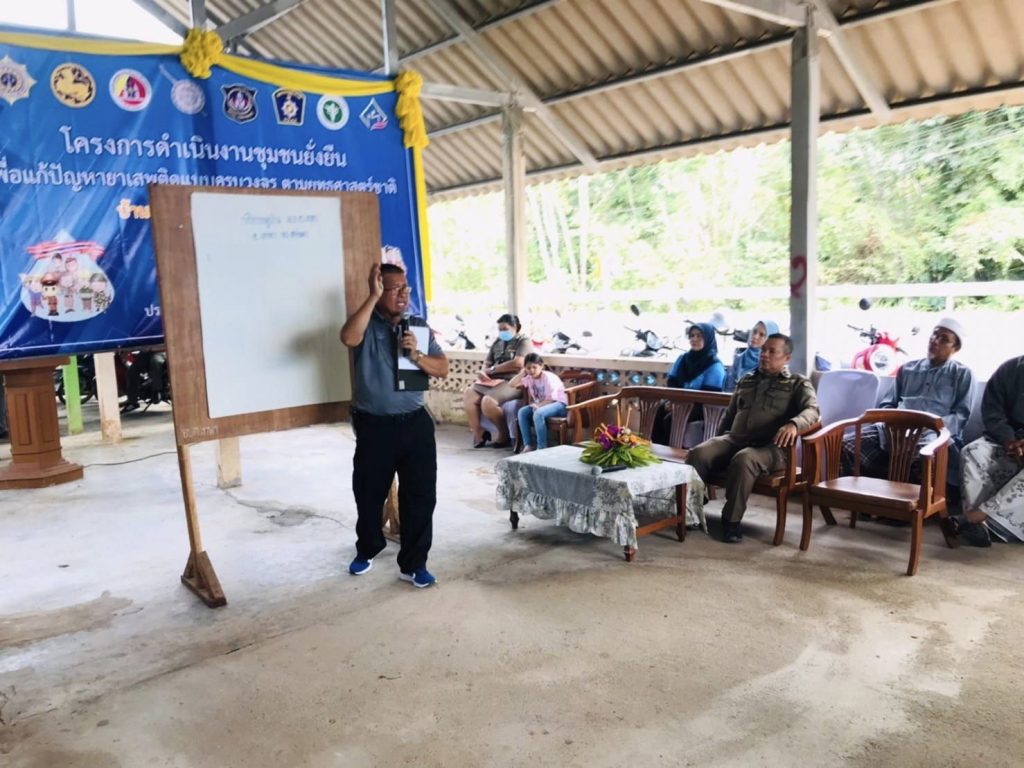 เมื่อวันที่ 5 เม.ย. 2566 เวลา 14.00 น. พ.ต.อ.ธรรมรัตน์ เพชรหนองชุม ผกก.สภ.เทพา พร้อมด้วย พ.ต.ท.สุรเดช เส็นยีหีม รอง ผกก.ป.สภ.เทพา , พ.ต.ท.นิติ ทองชูช่วย สวป.สภ.เทพา , พ.ต.ต.หญิง รัตณา มะหันตะกิจ สว.อก.สภ.เทพา , ชุดปฏิบัติการชุมชนยั่งยืน ผู้แทนจากหน่วยงานราชการ และผู้นำเขตชุมชน ตลอดถึงประชาชนในพื้นที่ ร่วมดำเนินกาาตามโครงการชุมชนยั่งยืน เพื่อแก้ไขปัญหายาเสพติด แบบครบวงจรตามยุทธศาสตร์ชาติ ในหมู่บ้านเป้าหมาย ณ ศาลาอเนกประสงค์ บ้านป่ากอ หมู่ 5 ต.เทพา อ.เทพา จว.สงขลา โดยมี นายสิทธิชัย เทพภูษา นายอำเภอเทพา เป็นประธาน