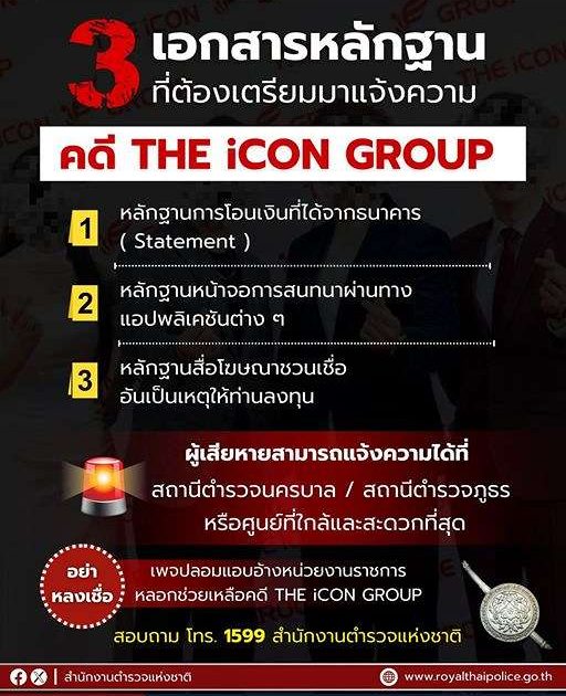 คดี ” ดิไอคอนกรุ๊ป ” แจ้งความได้ที่ สน. / สภ. ทุกแห่ง หรือศูนย์รับแจ้งความที่ใกล้ และสะดวกที่สุด