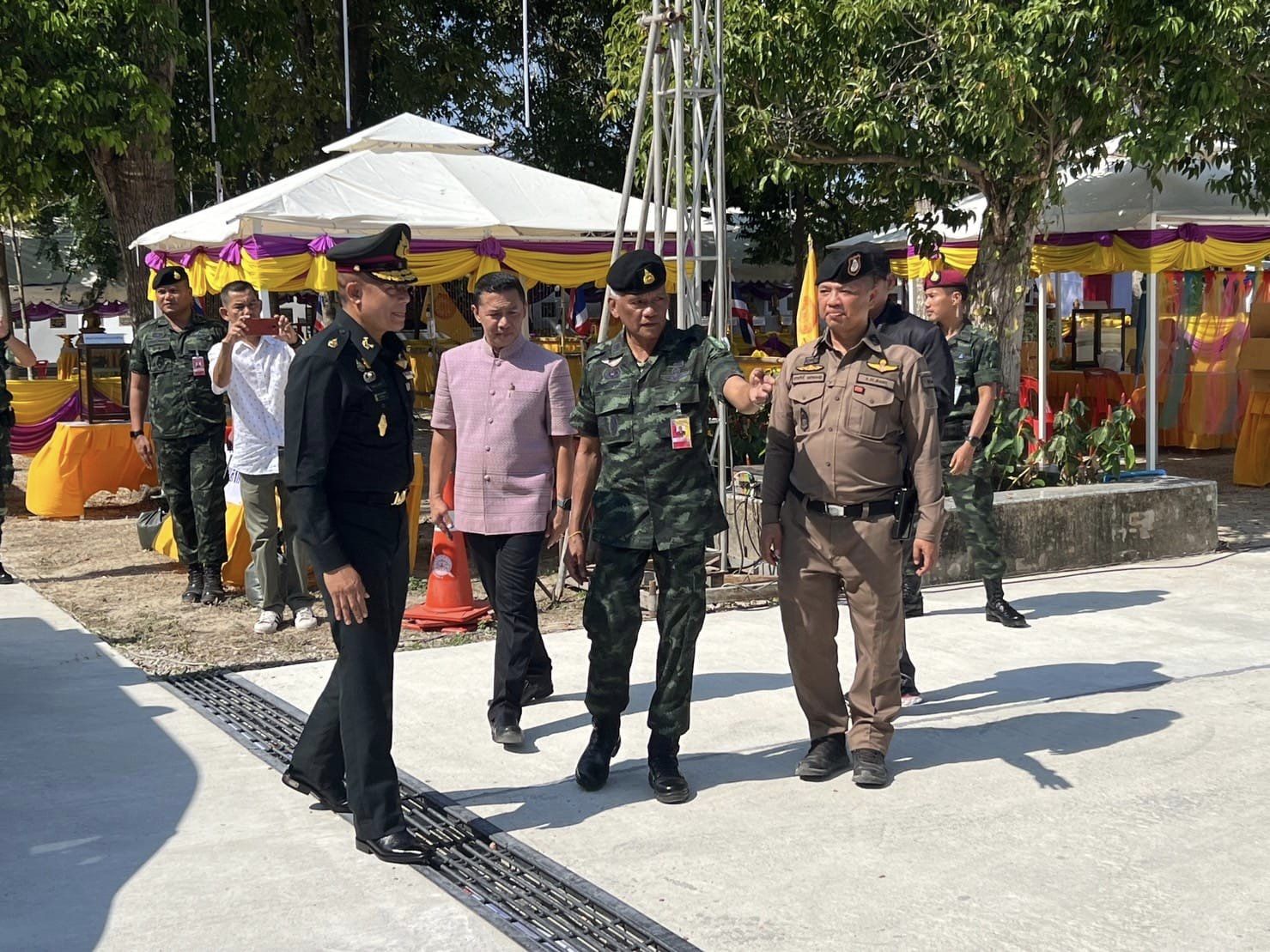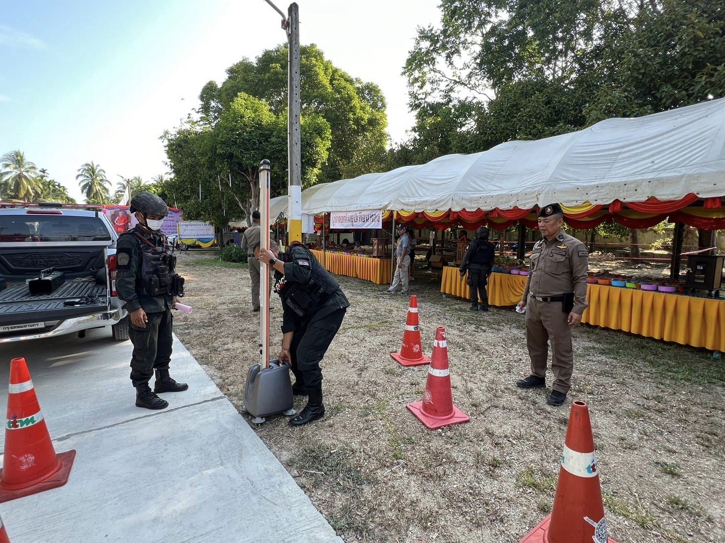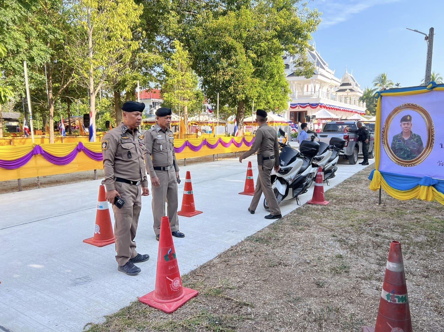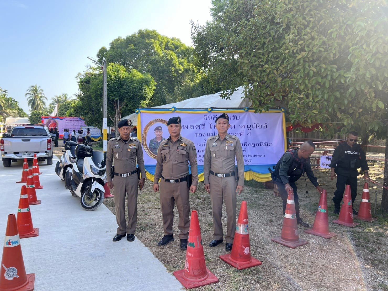 ตรวจการปฏิบัติ_ตามมาตรการรักษาความปลอดภัย 13 มีนาคม 2567 โดย thepha / ข่าวภารกิจผู้บังคับบัญชา เมื่อวันที่ 13 มี.ค. 2567 เวลา 08.20 น. พ.ต.อ.ธรรมรัตน์ เพชรหนองชุม ผกก.สภ.เทพา พร้อมด้วย พ.ต.ท.สุรเดช เส็นยีหีม รอง ผกก.ป.สภ.เทพา , พ.ต.ท.พิสิทธิ์ โรจชะยะ สวป.สภ.เทพา . ร่วมกับเจ้าหน้าที่ประจำกองอำนวยการรักษาความสงบเรียบร้อย ตรวจสอบความพร้อม การปฏิบัติหน้าที่ตามมาตรการการรักษาความปลอดภัย อำนวยความสะดวกการจราจร . ร่วมต้อนรับ พล.ต.ไพศาล หนูสังข์ รองแม่ทัพ ภาค 4 เดินทางมาเป็นประธานในพิธีเปิดงานผูกพัทธสีมา – ปิดทองฝังลูกนิมิต และทอดผ้าป่าสามัคคี ณ วัดพิกุลบุญญาราม ต.เทพา อ.เทพา จง.สงขลา