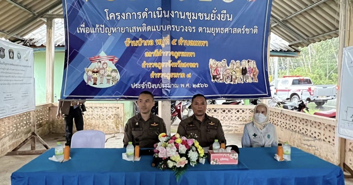 เมื่อวันที่ 27 มิ.ย. 2566 เวลา 15.00 น. พ.ต.อ.พิชัย กิระวานิช รอง ผบก.ภ.จว.สงขลา พร้อมคณะเดินทางตรวจติดตามประเมินผลการดำเนินโครงการดำเนินงานชุมชนยั่งยืนเพื่อแก้ไขปัญหายาเสพติดแบบครบวงจรตามยุทธศาสตร์ชาติ ประจำปีงบประมาณ พ.ศ. 2566 บ้านป่ากอ หมู่ 5 ต.เทพา อ.เทพา จว.สงขลา โดยมี พ.ต.อ.ธรรมรัตน์ เพชรหนองชุม ผกก.สภ.เทพา , พ.ต.ท.วรรณพงษ์ วงษ์สุวรรณ รอง ผกก.สส.สภ.เทพา , พ.ต.ท.พิสิทธิ์ โรจชะยะ สวป.สภ.เทพา , พ.ต.ต.หญิง รัตณา มะหันตะกิจ สว.อก.สภ.เทพา พร้อมด้วย น.ส.เยาวลักษ์ แก้วละเอียด ปลัดอำเภอ เจ้าพนักงานปกครอง ชำนาญการ , นางสุวรรณี คานยู เจ้าหน้าที่สาธารณสุข นักจิตวิทยา CBTx , นายการิม มูณี ผู้ใหญ่บ้าน และเจ้าหน้าที่ประจำชุดปฏิบัติการชุมชนยั่งยืน ร่วมให้การต้อนรับและนำเสนอความคืบหน้าในการดำเนินการตามโครงการ