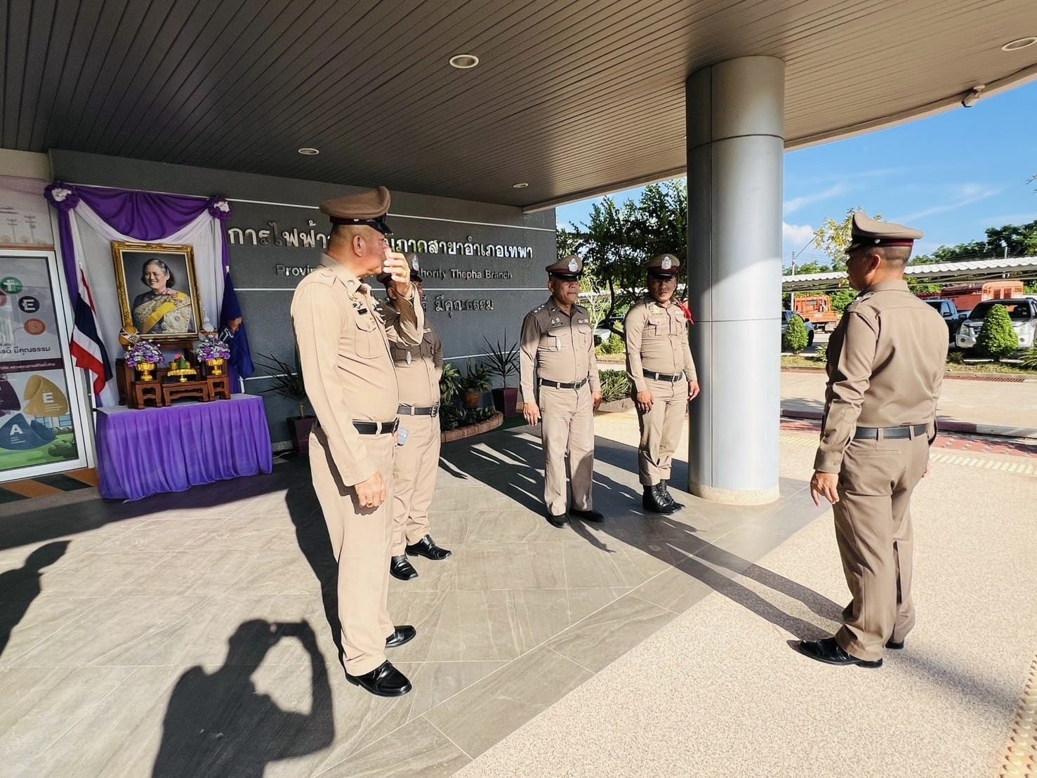 พ.ต.อ.ธรรมรัตน์ เพชรหนองชุม ผกก.สภ.เทพา ตรวจกำชับการปฏิบัติกำลังถวายความปลอดภัยประจำจุดพักรถ/พื้นที่ปลอดภัยในเส้นทางหมายเสด็จ ฯ ให้เป็นไปด้วยความเรียบร้อย สมพระเกียรติ และมีความปลอดภัยสูงสุด