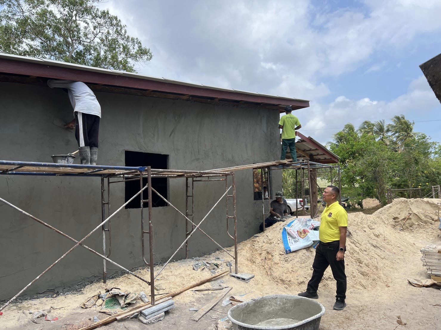 พ.ต.อ.ธรรมรัตน์ เพชรหนองชุม ผกก.สภ.เทพา ตรวจติดตามความคืบหน้าการสร้างบ้านใหม่โดยข้าราชการตำรวจและประชาชนจิตอาสาในพื้นที่ ร่วมมือร่วมแรงสร้าง เพื่อยกระดับคุณภาพชีวิตให้ประชาชนอยู่ดีมีสุขอย่างยั่งยืน ตามโครงการ ” บ้านปันสุข ” ของ นายสยาม ไชยเพชร ณ บ้านหัวสวน หมู่ 1 ต.เกาะสะบ้า อ.เทพา จว.สงขลา