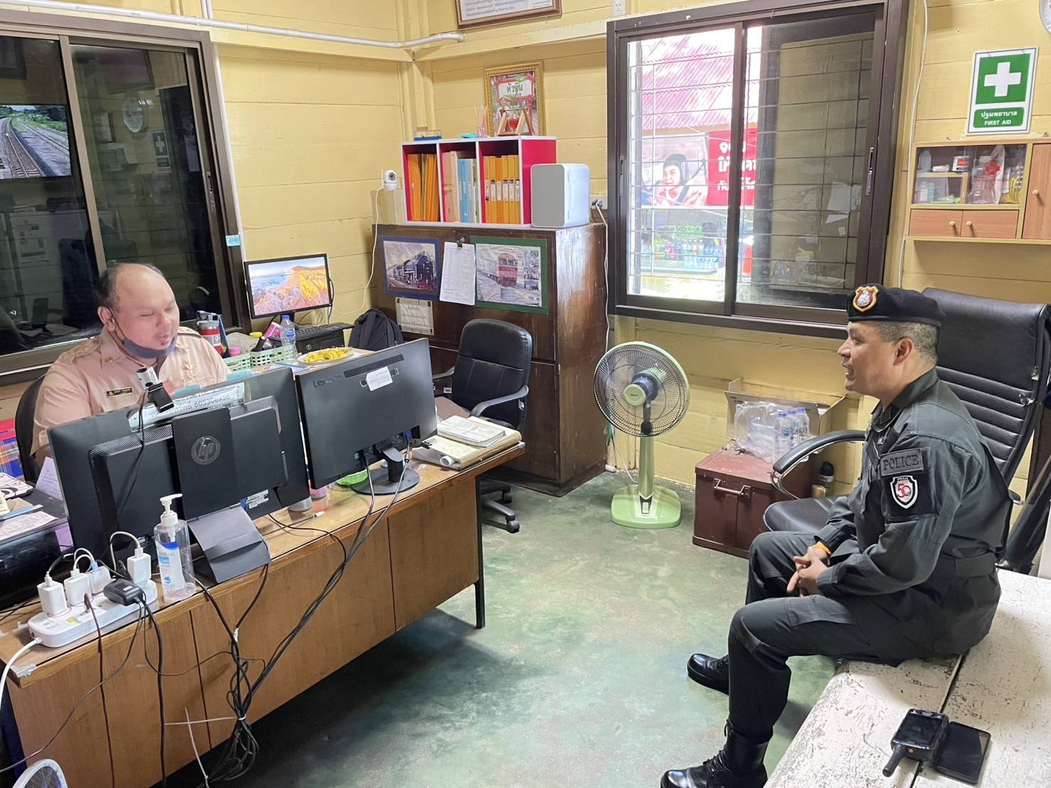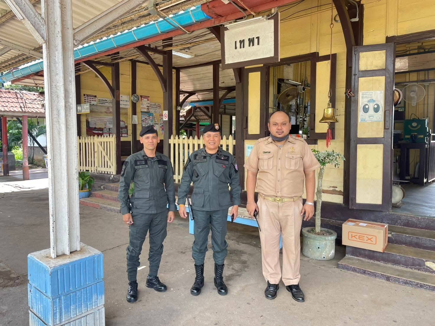 ตรวจเยี่ยมเป็นกำลังใจให้กับ พนักงานและชุดรักษาความปลอดภัยสถานนีรถไฟ , แม่ค้าและประชาชนตลาดสดหลังสถานีรถไฟ เทศบาล ต.เทพา พูดคุยสอบถามรับฟังปัญหาข้อเสนอแนะ ประสานความร่วมมือในการแจ้งข้อมูลข่าวสาร ประชาสัมพันธ์การเฝ้าระวังป้องกันเหตุ