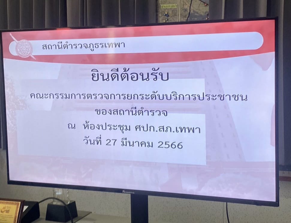 เมื่อวันที่ 27 มี.ค. 2566 เวลา 13.00 น. พ.ต.อ.ธรรมรัตน์ เพชรหนองชุม ผกก.สภ.เทพา พร้อมด้วย พ.ต.ต.หญิง รัตณา มะหันตะกิจ สว.อก.สภ.เทพา และข้าราชการตำรวจฝ่ายอำนวยการทุกแผนกงาน ร่วมต้อนรับคณะทำงานขับเคลื่อนการตรวจประเมินตามแบบตรวจสอบติดตามการดำเนินการตามแนวทางการยกระดับการบริการประชาชนของสถานีตำรวจ ณ ห้องประชุม ศปก.สภ.เทพา