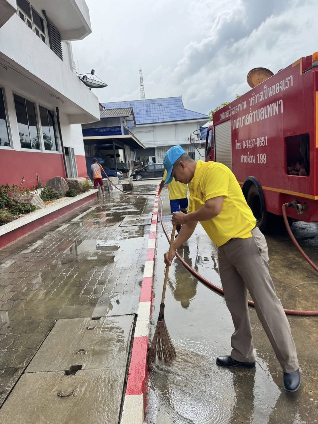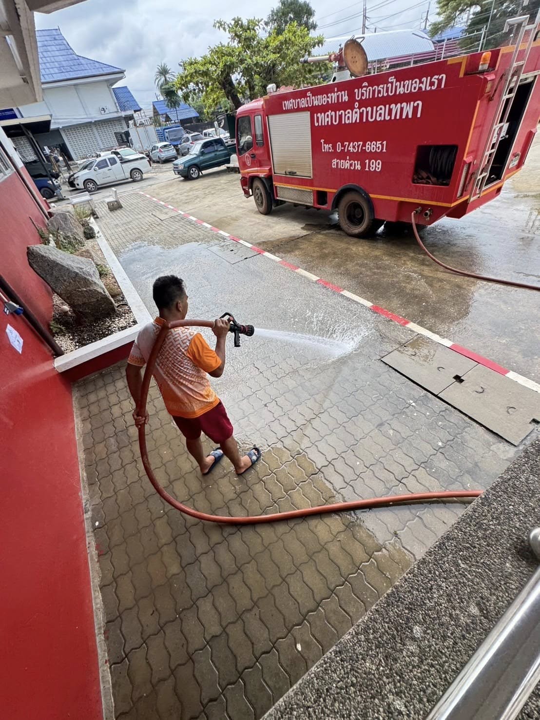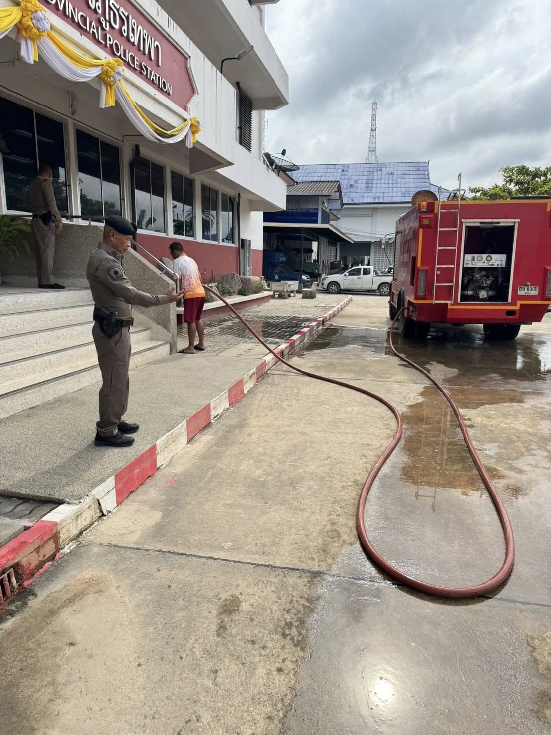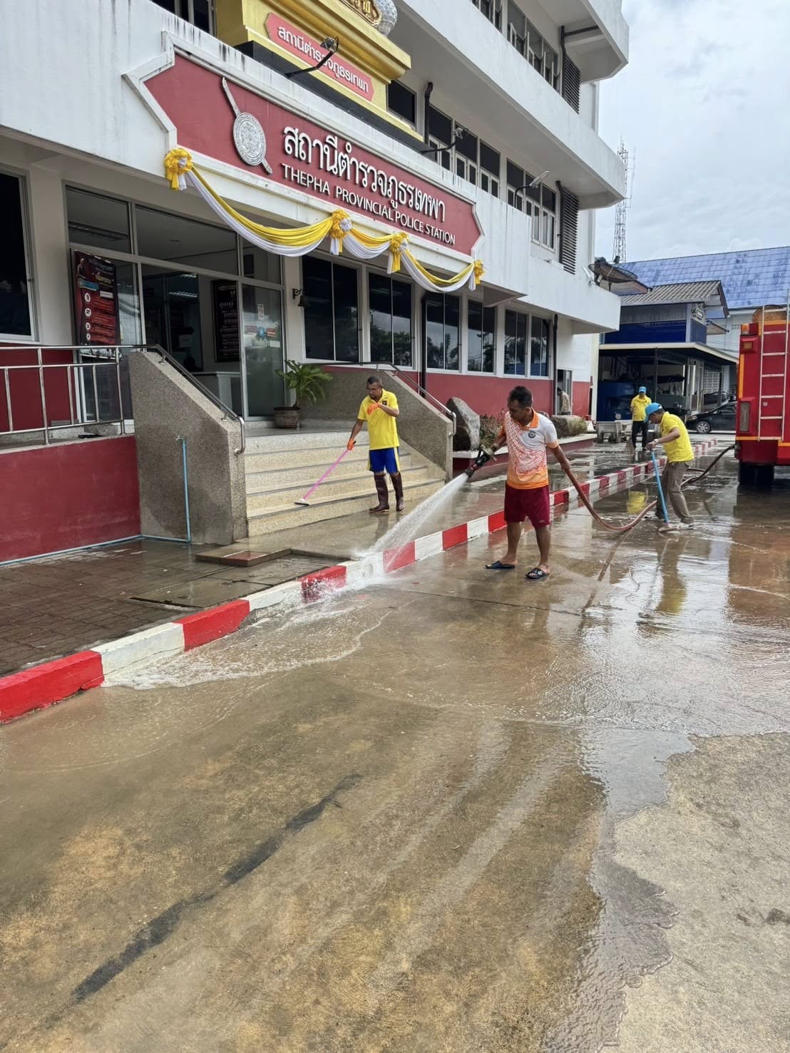 #ขอขอบคุณ เทศบาล ต.เทพา ที่ให้การสนับสนุน โดยพนักงานประจำรถน้ำ ได้ดำเนินการฉีดน้ำล้างทำความสะอาดบริเวณรอบที่ทำการสถานีตำรวจ