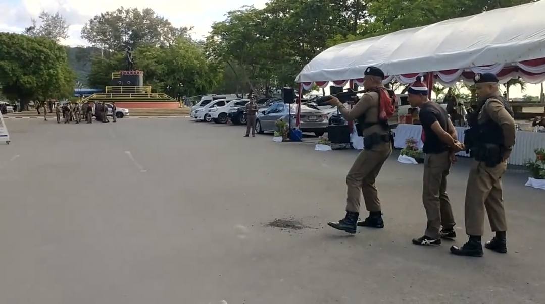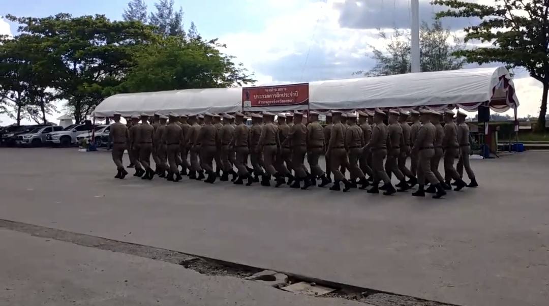 ร.ต.อ.อำนาจ บุญจันทร์ รอง สวป.สภ.เทพา ชุดครูฝึก ผู้ช่วยครูฝึก และกำลังข้าราชการตำรวจ สภ.เทพา