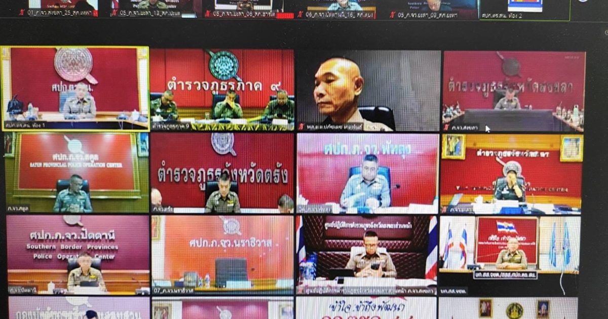 พล.ต.ท.นันทเดช ย้อยนวล ผบช.ภ.9/ผบ.ศปก.ตร.สน. เป็นประธาน ผ่านระบบการประชุมทางไกลผ่านจอภาพ (Video Conference/Join Zoom Meeting) ณ ห้องประชุม ศปก.สภ.เทพา