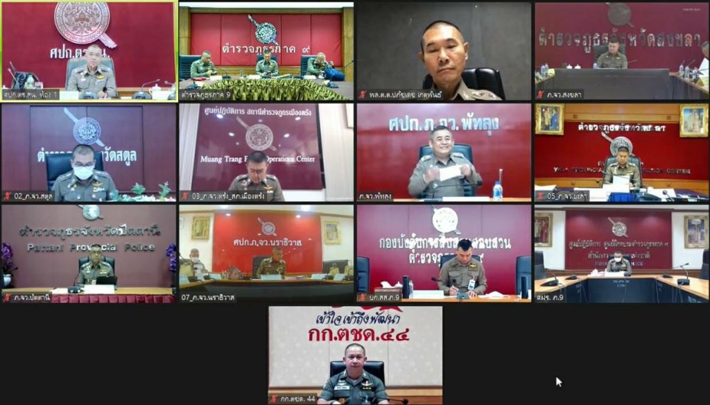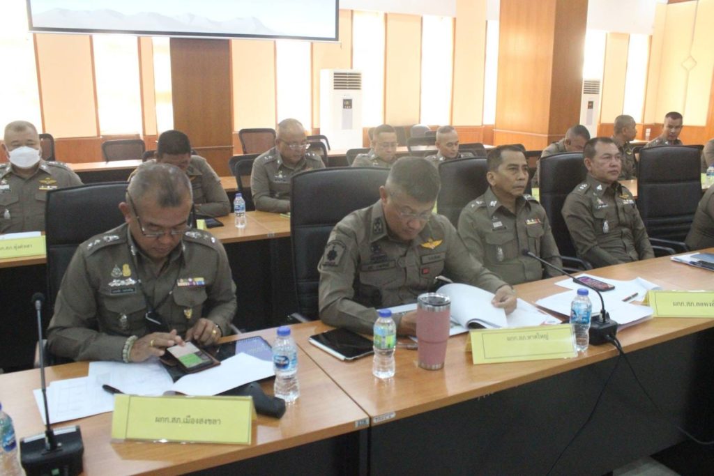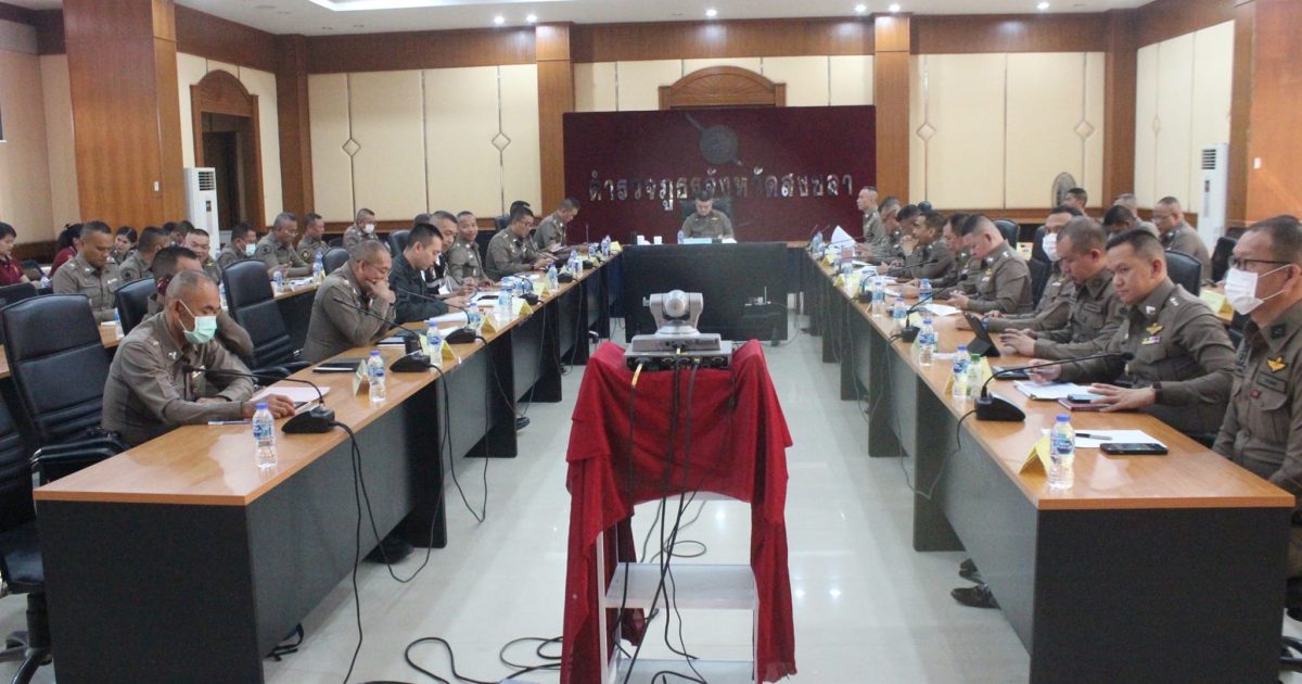 เมื่อวันที่ 19 เม.ย. 2566 เวลา 09.00 น. พล.ต.ต.วรา เวชชาภินันท์ ผบก.ภ.จว.สงขลา/ผบ.ศปก.ภ.จว.สงขลา สน. , พ.ต.อ.สุวโรจน์ ลุนหวิทยานนท์ รอง ผบก.ภ.จว.สงขลา/รอง ผบ.ศปก.ภ.จว.สงขลา สน. พร้อมด้วย รอง ผบก.ภ.จว.สงขลา , ผกก.(สอบสวน)กลุ่มงานสอบสวนฯ , ผกก.(สอบสวน)กลุ่มงานสอบสวนฯ(มค) , พ.ต.อ.ธรรมรัตน์ เพชรหนองชุม ผกก.สภ.เทพา และ หน.สภ./ผู้แทน หน.สภ. ในสังกัด ภ.จว.สงขลา ร่วมประชุมขับเคลื่อน ศปก.ตร.สน./War Room รายงานความคืบหน้าคดีอาญาทีเกิดขึ้นในพื้นที่ ภ.จว.สงขลา รับทราบสรุปสถานการณ์ ข้อสั่งการ ติดตามวิเคราะห์สถานการณ์และเร่งรัดสั่งการขับเคลื่อนภารกิจสำคัญ โดยมี พล.ต.ท.นันทเดช ย้อยนวล ผบช.ภ.9/ผบ.ศปก.ตร.สน. เป็นประธาน ผ่านระบบการประชุมทางไกล (Video Conference) ณ ห้องประชุมสมิหลา (ชั้น 2) ภ.จว.สงขลา