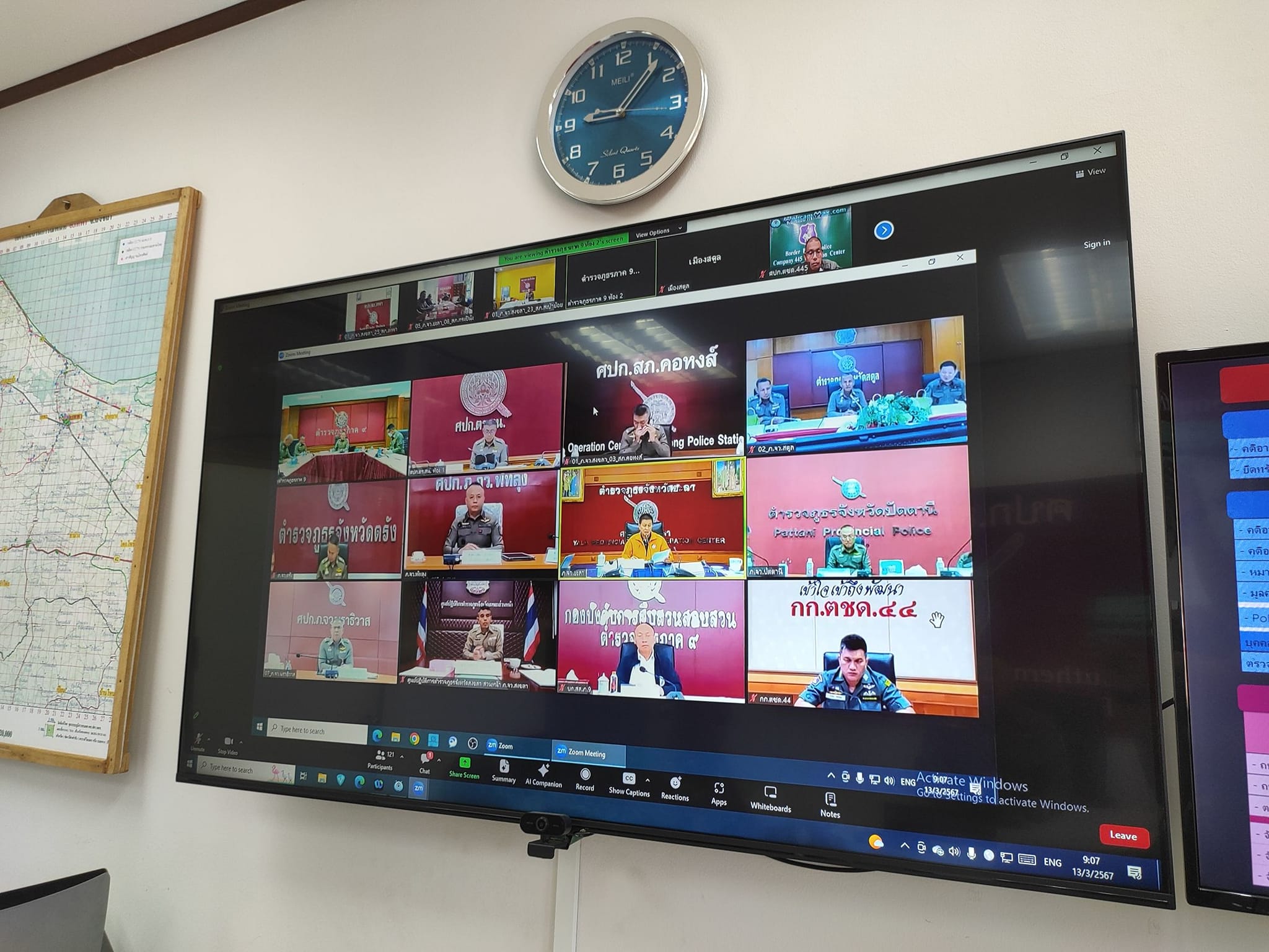 ประชุมขับเคลื่อน ศปก.ตร.สน. 13 มีนาคม 2567 โดย thepha / ข่าวภารกิจผู้บังคับบัญชา เมื่อวันที่ 13 มี.ค. 2567 เวลา 09.00 น. พ.ต.อ.ธรรมรัตน์ เพชรหนองชุม ผกก.สภ.เทพา พร้อมด้วย พ.ต.ท.สุรเดช เส็นยีหีม รอง ผกก.ป.สภ.เทพา , พ.ต.ท.วรรณพงษ์ วงษ์สุวรรณ รอง ผกก.สส.สภ.เทพา . ร่วมกับ ศปก.ภ.จว.สงขลา สน. ประชุมขับเคลื่อน ศปก.ตร.สน./War Room รับทราบสรุปสถานการณ์ ข้อสั่งการ ติดตามวิเคราะห์สถานการณ์และเร่งรัดสั่งการขับเคลื่อนภารกิจสำคัญ . โดยมี พล.ต.ท.ปิยะวัฒน์ เฉลิมศรี ผบช.ภ.9 เป็นประธาน ผ่านระบบการประชุมทางไกลผ่านจอภาพ (Video Conference/Join Zoom Meeting) . พร้อมตรวจสอบสถานภาพกล้อง CCTV และสรุปผลการปฏิบัติ ของ สภ. ณ ห้องประชุม ศปก.สภ.เทพา