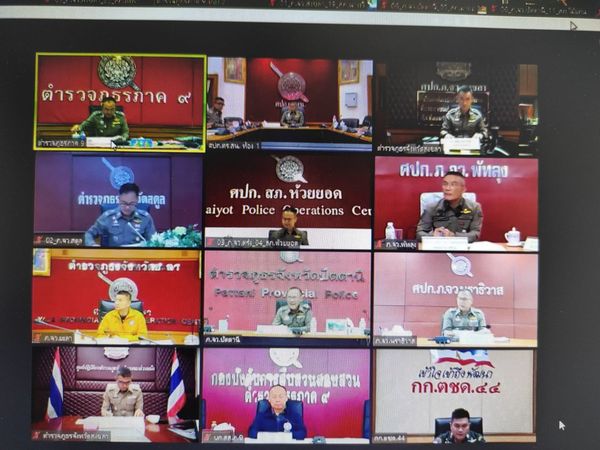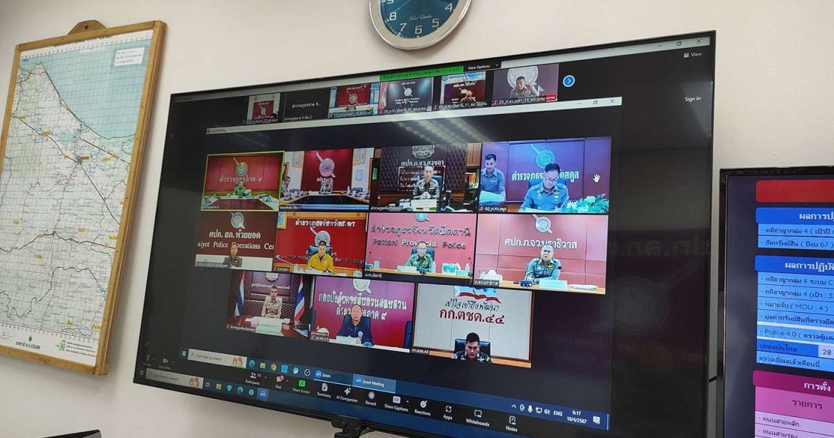 ประชุมขับเคลื่อน ศปก.ตร.สน. 10 เมษายน 2567 โดย thepha / ข่าวภารกิจผู้บังคับบัญชา เมื่อวันที่ 10 เม.ย. 2567 เวลา 09.00 น. พ.ต.อ.ธรรมรัตน์ เพชรหนองชุม ผกก.สภ.เทพา พร้อมด้วย พ.ต.ท.บุญธรรม มากมณี สว.สส.สภ.เทพา , พ.ต.ท.วิสันต์ ดิสถาพร สวป.สภ เทพา , ร.ต.อ.สัมพันธ์ กาลรัตน์ รอง สวป.สภ.เทพา . ร่วมกับ ศปก.ภ.จว.สงขลา สน. ประชุมขับเคลื่อน ศปก.ตร.สน./War Room รับทราบสรุปสถานการณ์ ข้อสั่งการ ติดตามวิเคราะห์สถานการณ์และเร่งรัดสั่งการขับเคลื่อนภารกิจสำคัญ . โดยมี พล.ต.ท.ปิยะวัฒน์ เฉลิมศรี ผบช.ภ.9/รอง ผบ.ศปก.ตร.สน.(1) เป็นประธาน ผ่านระบบการประชุมทางไกลผ่านจอภาพ (Video Conference/Join Zoom Meeting) . พร้อมตรวจสอบสถานภาพกล้อง CCTV และสรุปผลการปฏิบัติ ของ สภ. ณ ห้องประชุม ศปก.สภ.เทพา