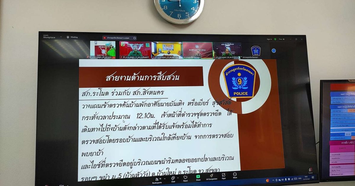 ร่วมกับ ศปก.ภ.จว.สงขลา สน. ประชุมขับเคลื่อน ศปก.ตร.สน./War Room รับทราบสรุปสถานการณ์ ข้อสั่งการ ติดตามวิเคราะห์สถานการณ์และเร่งรัดสั่งการขับเคลื่อนภารกิจสำคัญ