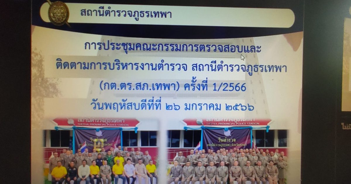 เมื่อวันที่ 26 ม.ค. 2566 เวลา 13.00 น. นายสุรพัศ รัตนไชย ประธานคณะกรรมการตรวจสอบและติดตามการบริหารงานตำรวจ (กต.ตร.) ประชุมคณะกรรมการ ครั้งที่ 1/2566 เพื่อติดตามผลการดำเนินงานในห้วงที่ผ่านมา ร่วมกันวิเคราะห์ปัญหาที่เกิดขึ้นในพื้นที่ พร้อมหามาตรการการป้องกันและแก้ไข โดยมี พ.ต.อ.ธรรมรัตน์ เพชรหนองชุม ผกก.สภ.เทพา พร้อมด้วย พ.ต.ท.สุรเดช เส็นยีหีม รอง ผกก.ป.สภ.เทพา , พ.ต.ท.ชิต สังข์แก้ว รอง ผกก.(สอบสวน)สภ.เทพา , พ.ต.ท.วรรณพงษ์ วงษ์สุวรรณ รอง ผกก.สส.สภ.เทพา , พ.ต.ท.พิสิทธิ์ โรจชะยะ สวป.สภ.เทพา , พ.ต.ต.บุญธรรม มากมณี สว.สส.สภ.เทพา , พ.ต.ต.หญิง รัตณา มะหันตะกิจ สว.อก.สภ.เทพา และคณะกรรมการตรวจสอบและติดตามการบริหารงานตำรวจ สภ.เทพา (กต.ตร.สภ.เทพา) เข้าร่วมประชุม ณ ห้องประชุม สภ.เทพา