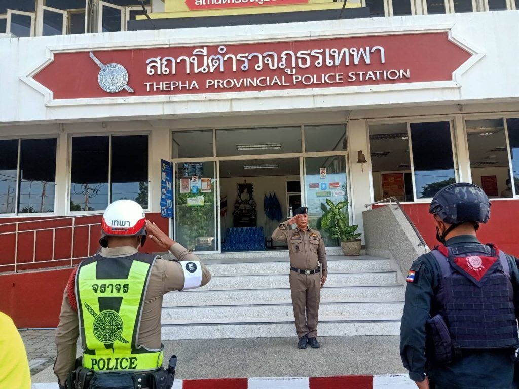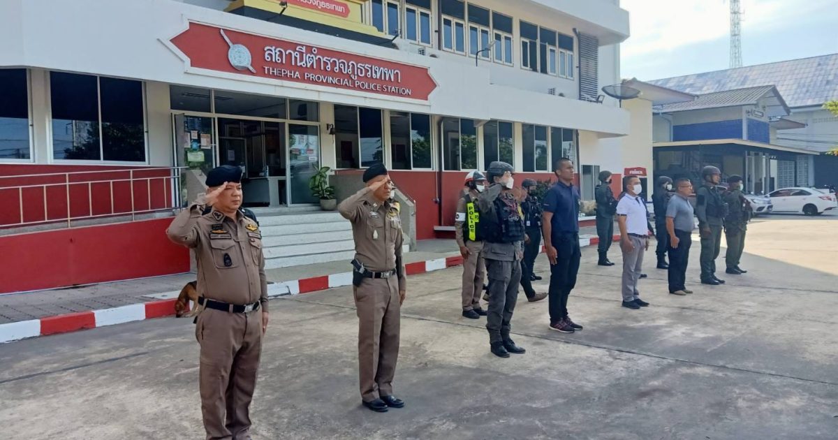 เมื่อวันที่ 19 ก.ย. 2566 เวลา 08.30 น. พ.ต.อ.ธรรมรัตน์ เพชรหนองชุม ผกก.สภ.เทพา พร้อมด้วย พ.ต.ท.สุรเดช เส็นยีหีม รอง ผกก.ป.สภ.เทพา , พ.ต.ท.นิติ ทองชูช่วย สวป.สภ.เทพา , ร.ต.อ.ณัฐปคัลภ์ นิลกาฬ รอง สวป.สภ.เทพา และข้าราชการตำรวจ ร่วมกล่าวคำปฏิญาณตนและอุดมคติตำรวจ ประชุมชี้แจงภารกิจ สรุปสถานการณ์ ข้อสั่งการของผู้บังคับบัญชา กำชับการปฏิบัติปล่อยแถวออกปฏิบัติหน้าที่