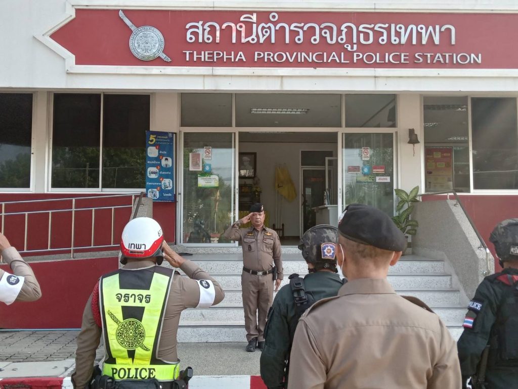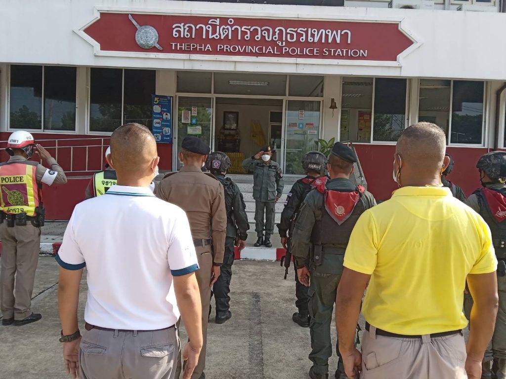 เมื่อ 10 ต.ค. 2566 เวลา 08.30 น. พ.ต.อ.ธรรมรัตน์ เพชรหนองชุม ผกก.สภ.เทพา พร้อมด้วย พ.ต.ท.พิสิทธิ์ โรจชะยะ สวป.สภ.เทพา , ร.ต.อ.พชรพล หัสมาน รอง สวป.สภ.เทพา และข้าราชการตำรวจ ร่วมกล่าวคำปฏิญาณตนและอุดมคติตำรวจ ประชุมชี้แจงภารกิจ สรุปสถานการณ์ ข้อสั่งการของผู้บังคับบัญชา กำชับการปฏิบัติปล่อยแถวออกปฏิบัติหน้าที่