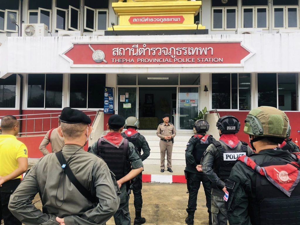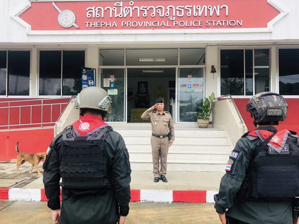 เมื่อวันที่ 14 ธ.ค. 2566 เวลา 08.30 น. พ.ต.อ.ธรรมรัตน์ เพชรหนองชุม ผกก.สภ.เทพา พร้อมด้วย พ.ต.ท.สุรเดช เส็นยีหีม รอง ผกก.ป.สภ.เทพา , พ.ต.ต.วิสันต์ ดิสถาพร สวป.สภ.เทพา , ร.ต.อ.ชาตรี เพชรบุญวรรโณ รอง สวป.สภ.เทพา และข้าราชการตำรวจ ร่วมกล่าวคำปฏิญาณตนและอุดมคติตำรวจ ประชุมชี้แจงภารกิจ สรุปสถานการณ์ ข้อสั่งการของผู้บังคับบัญชา กำชับการปฏิบัติปล่อยแถวออกปฏิบัติหน้าที่