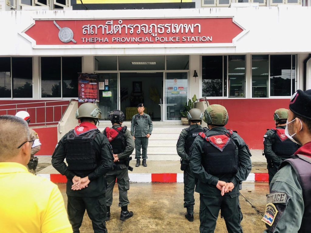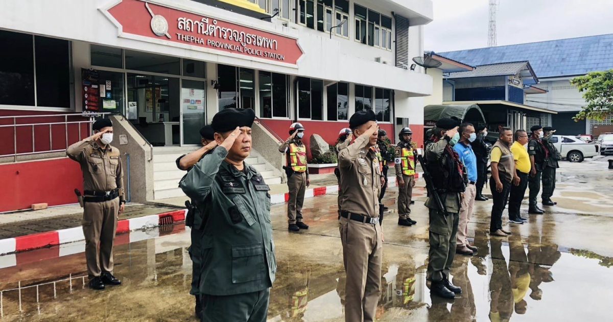 เมื่อวันที่ 22 ธ.ค. 2566 เวลา 08.30 น. พ.ต.อ.ธรรมรัตน์ เพชรหนองชุม ผกก.สภ.เทพา พร้อมด้วย พ.ต.ท.สุรเดช เส็นยีหีม รอง ผกก.ป.สภ.เทพา , พ.ต.ท.พิสิทธิ์ โรจชะยะ สวป.สภ.เทพา , พ.ต.ต.วิสันต์ ดิสถาพร สวป.สภ.เทพา , ร.ต.อ.สราวุธ สังข์ศิริ รอง สวป.สภ.เทพา และข้าราชการตำรวจ ร่วมกล่าวคำปฏิญาณตนและอุดมคติตำรวจ ประชุมชี้แจงภารกิจ สรุปสถานการณ์ ข้อสั่งการของผู้บังคับบัญชา กำชับการปฏิบัติปล่อยแถวออกปฏิบัติหน้าที่