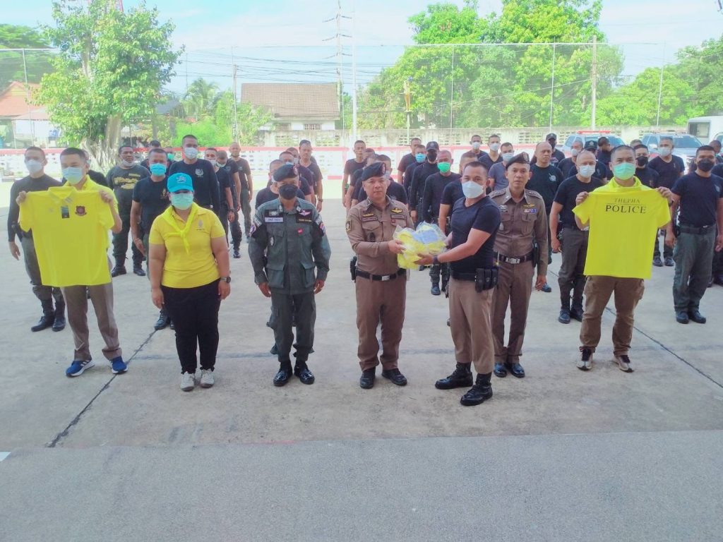 มอบเสื้อยืดสีเหลืองให้แก่ข้าราชการตำรวจเพื่อใช้ในงานกิจกรรมจิตอาสา ในรูปแบบเดียวกันของหน่วย