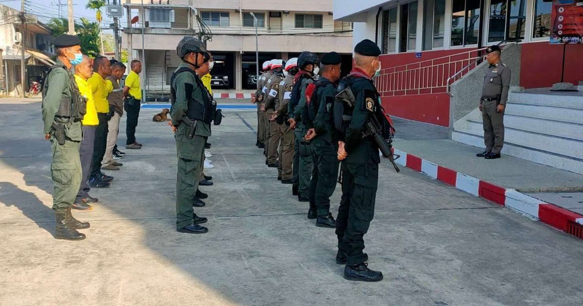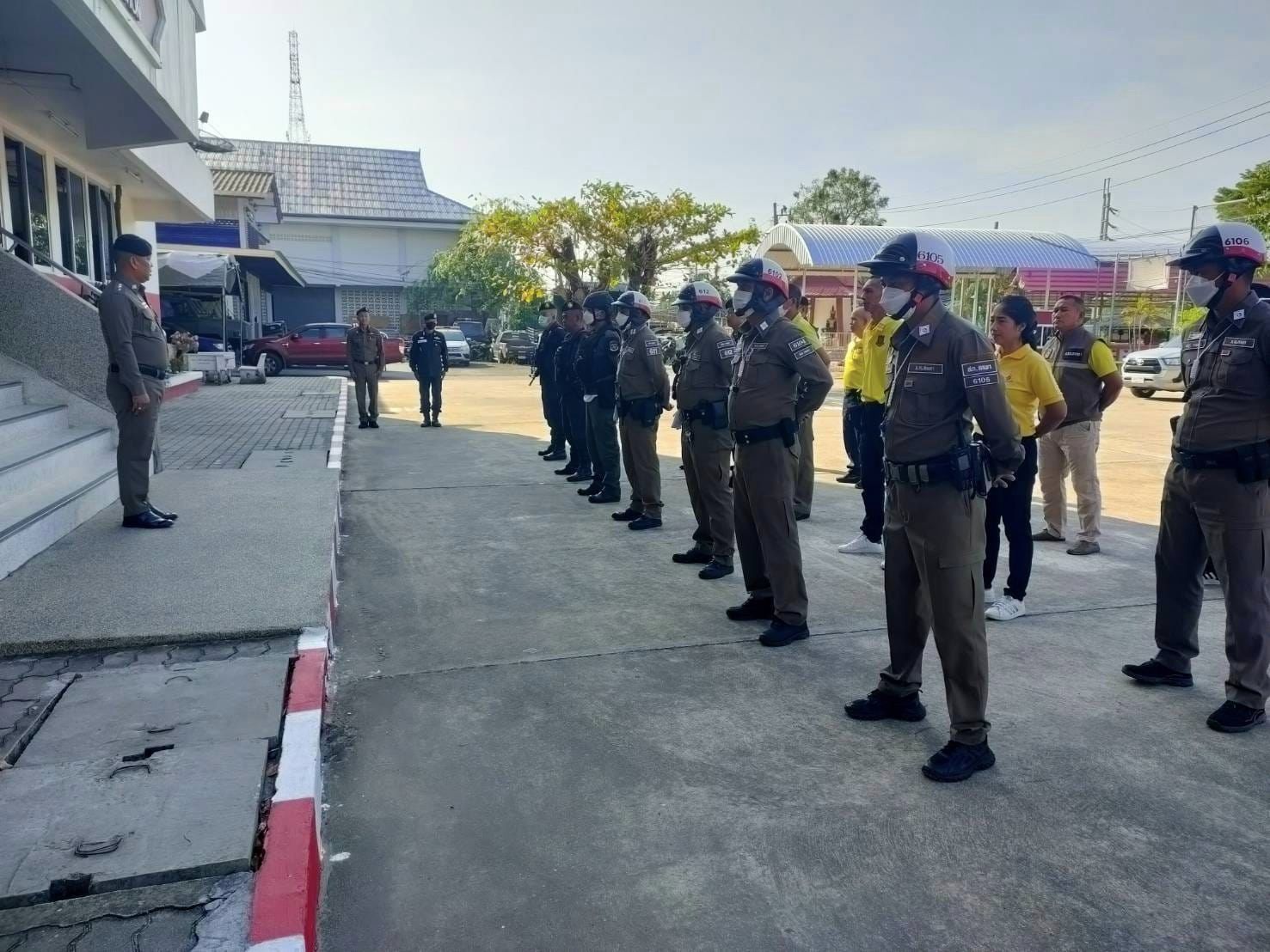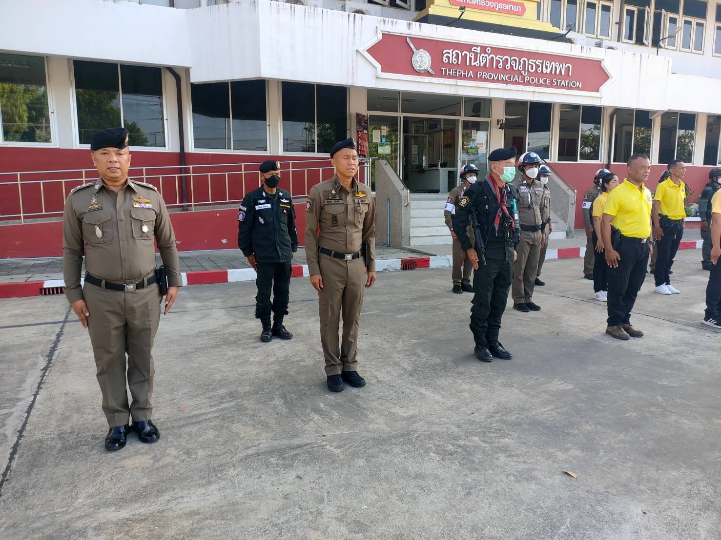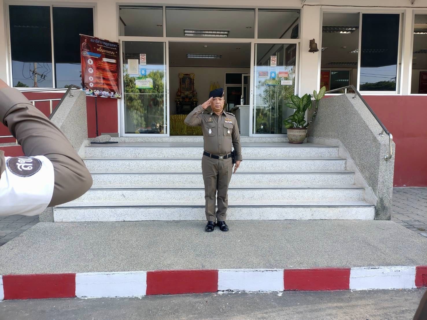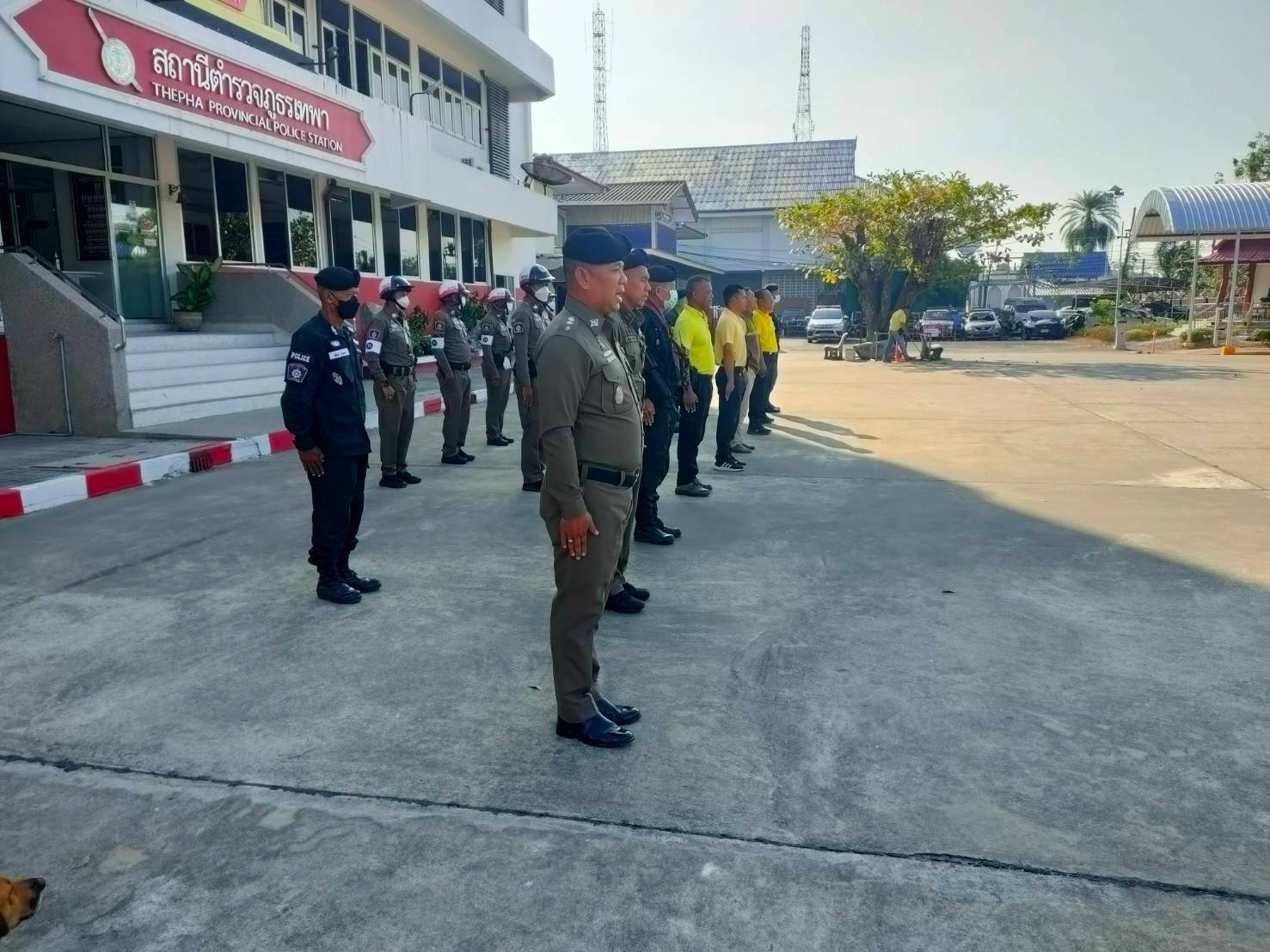 ร.ต.อ.สราวุธ สังข์ศิริ รอง สวป.สภ.เทพา และข้าราชการตำรวจ ร่วมกล่าวคำปฏิญาณตนและอุดมคติตำรวจ ประชุมชี้แจงภารกิจ สรุปสถานการณ์ ข้อสั่งการของผู้บังคับบัญชา กำชับการปฏิบัติปล่อยแถวออกปฏิบัติหน้าที่