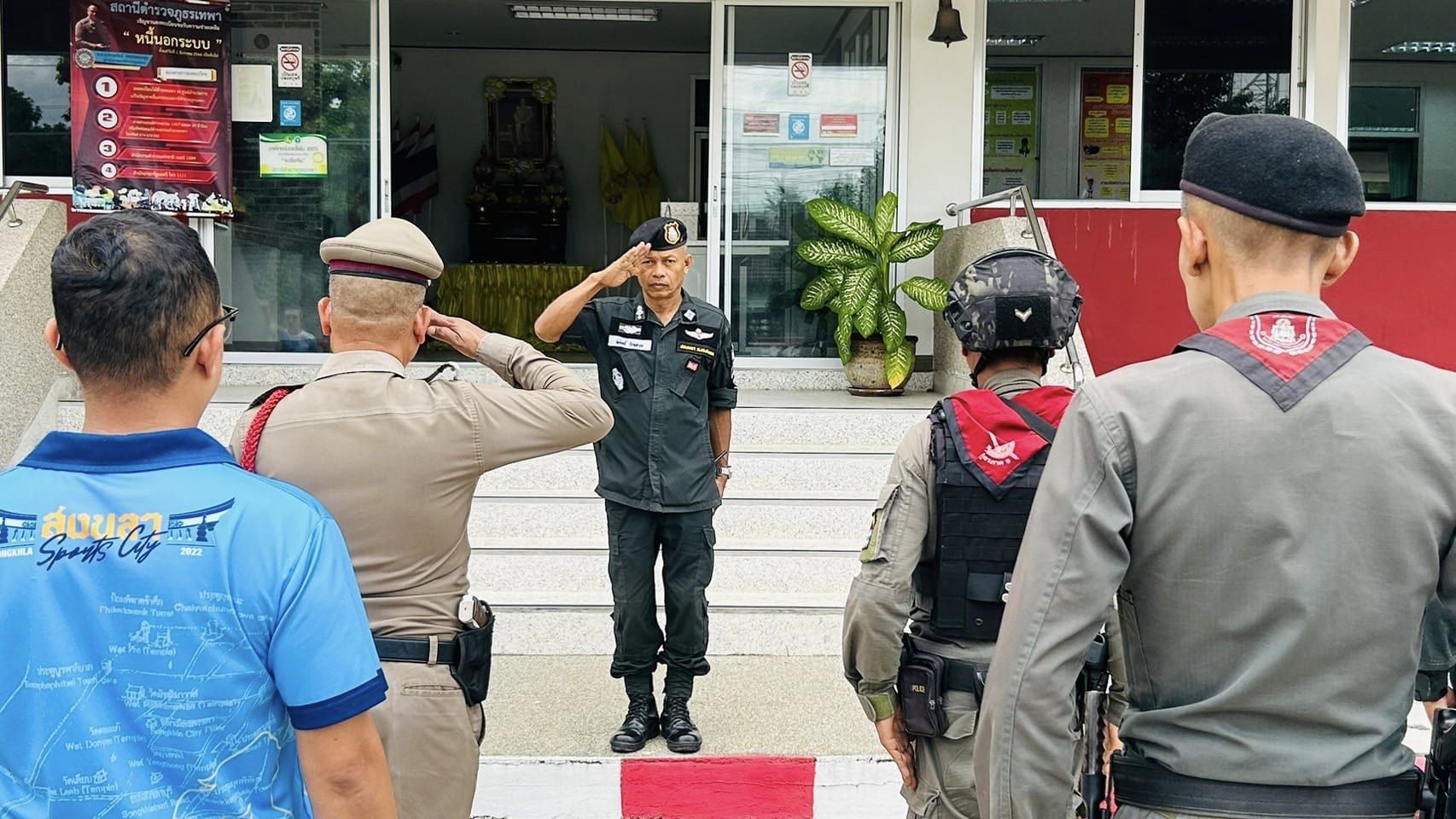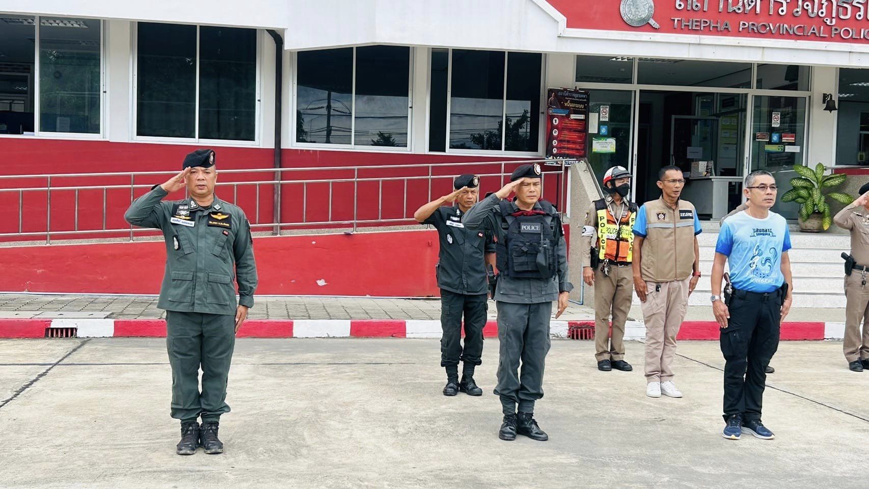 ร.ต.อ.ชาตรี เพชรบุญวรรโณ รอง สวป.สภ.เทพา และข้าราชการตำรวจ ร่วมกล่าวคำปฏิญาณตนและอุดมคติตำรวจ ประชุมชี้แจงภารกิจ สรุปสถานการณ์ ข้อสั่งการของผู้บังคับบัญชา กำชับการปฏิบัติปล่อยแถวออกปฏิบัติหน้าที่