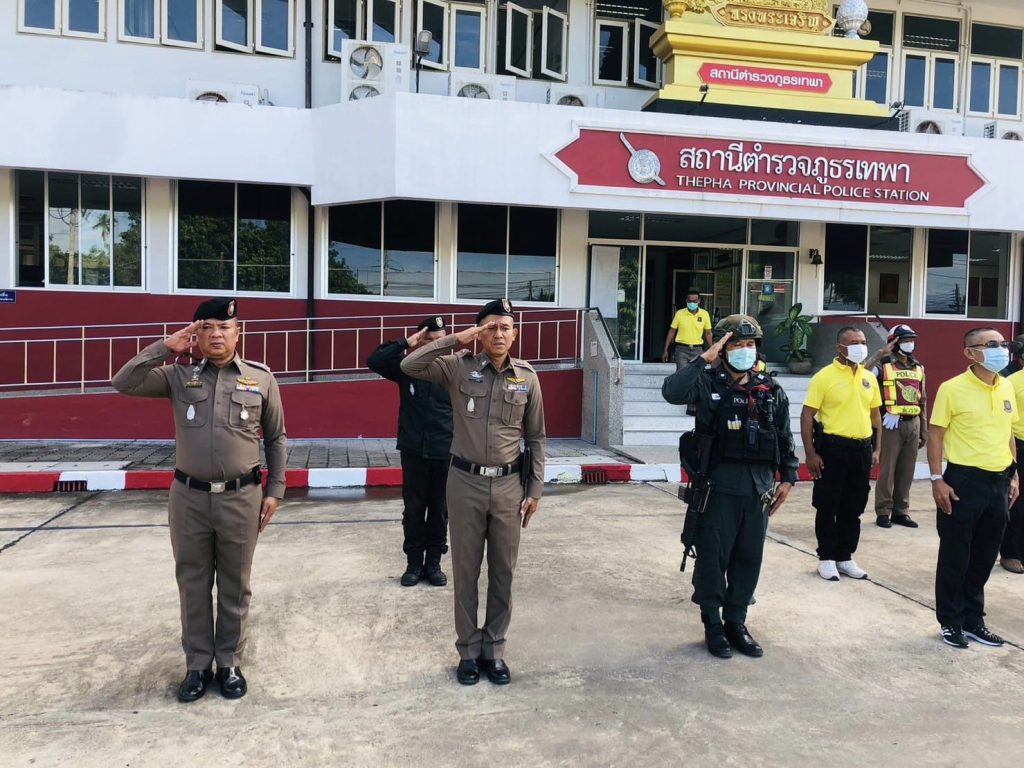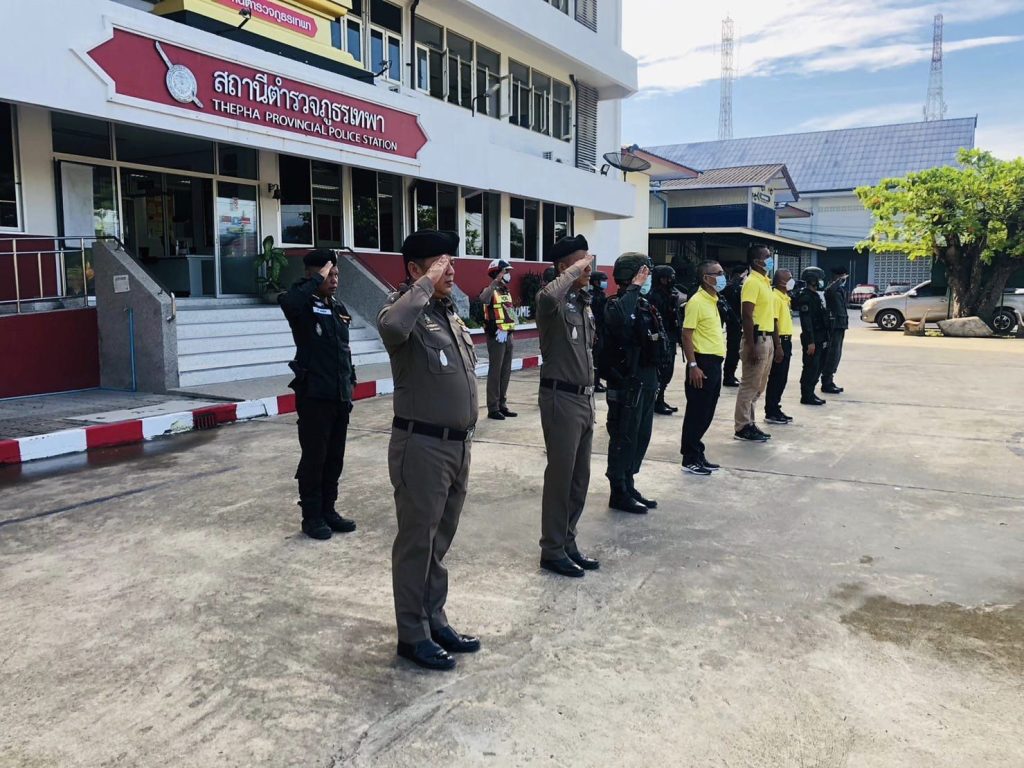 เมื่อวันที่ 3 ก.ค. 2566 เวลา 08.30 น. พ.ต.อ.ธรรมรัตน์ เพชรหนองชุม ผกก.สภ.เทพา พร้อมด้วย พ.ต.ท.สุรเดช เส็นยีหีม รอง ผกก.ป.สภ.เทพา , พ.ต.ท.นิติ ทองชูช่วย สวป.สภ.เทพา , ร.ต.ต.สุธี ช่วยมาก รอง สว.(ป.)สภ.เทพา และข้าราชการตำรวจ ร่วมกล่าวคำปฏิญาณตนและอุดมคติตำรวจ ประชุมชี้แจงภารกิจ สรุปสถานการณ์ ข้อสั่งการของผู้บังคับบัญชา กำชับการปฏิบัติปล่อยแถวออกปฏิบัติหน้าที่