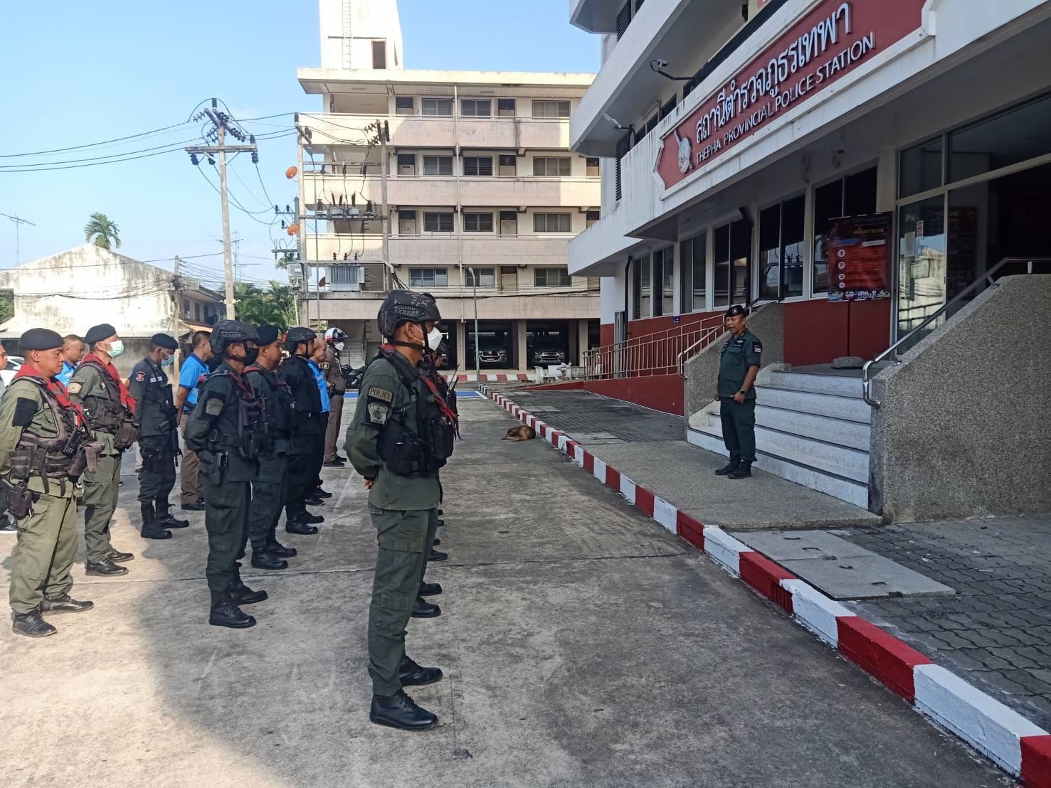 ร.ต.อ.ณัฐปคัลภ์ นิลกาฬ รอง สวป.สภ.เทพา และข้าราชการตำรวจ ร่วมกล่าวคำปฏิญาณตนและอุดมคติตำรวจ ประชุมชี้แจงภารกิจ สรุปสถานการณ์ ข้อสั่งการของผู้บังคับบัญชา กำชับการปฏิบัติปล่อยแถวออกปฏิบัติหน้าที่