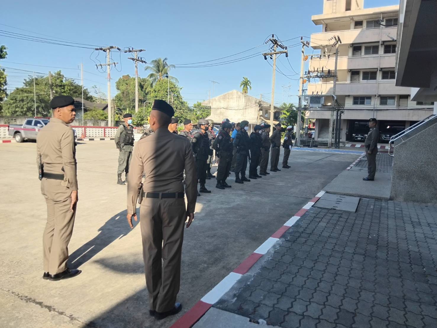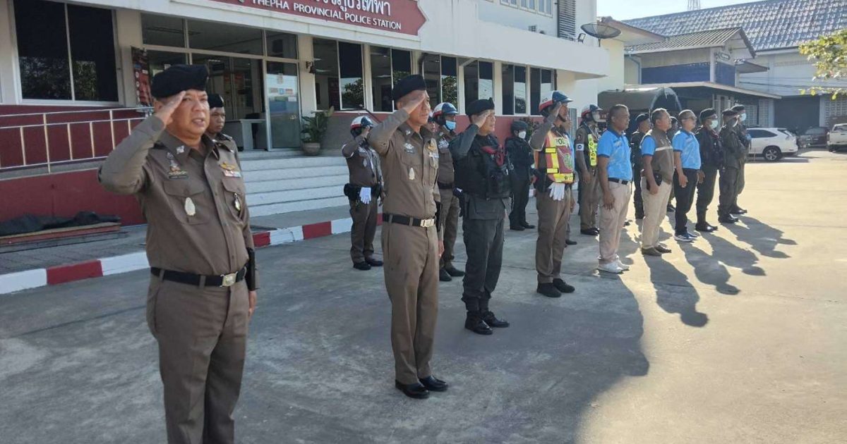 ร.ต.ท.อนันต์ นะมะณี รอง สว.(ป) สภ.เทพา และข้าราชการตำรวจ ร่วมกล่าวคำปฏิญาณตนและอุดมคติตำรวจ ประชุมชี้แจงภารกิจ สรุปสถานการณ์ ข้อสั่งการของผู้บังคับบัญชา กำชับการปฏิบัติปล่อยแถวออกปฏิบัติหน้าที่