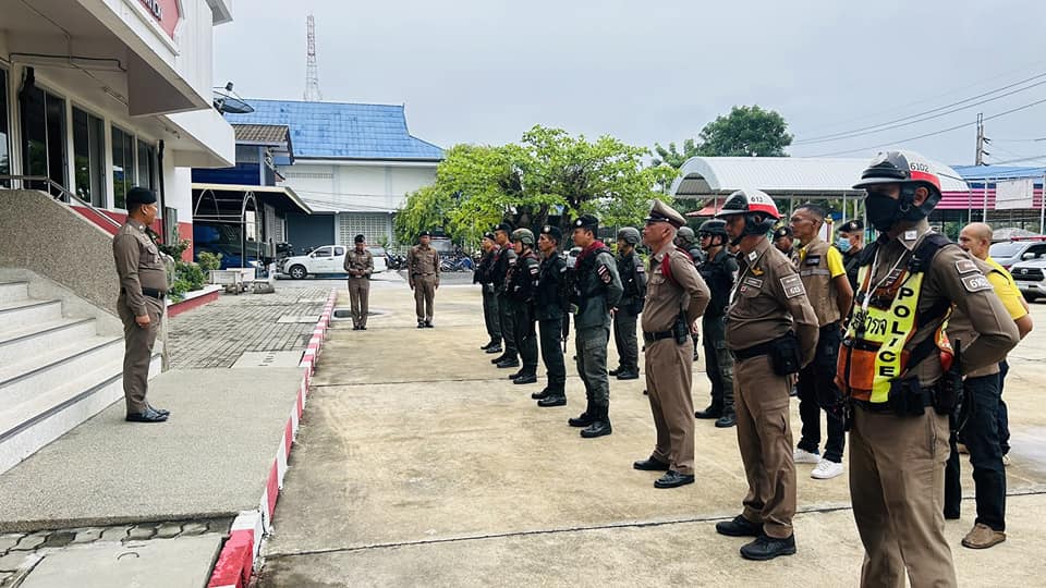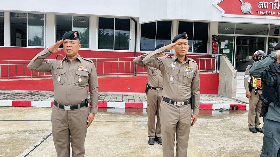 ร.ต.อ.ชาตรี เพชรบุญวรรโณ รอง สวป.สภ.เทพา และข้าราชการตำรวจ ร่วมกล่าวคำปฏิญาณตนและอุดมคติตำรวจ ประชุมชี้แจงภารกิจ สรุปสถานการณ์ ข้อสั่งการของผู้บังคับบัญชา กำชับการปฏิบัติปล่อยแถวออกปฏิบัติหน้าที่