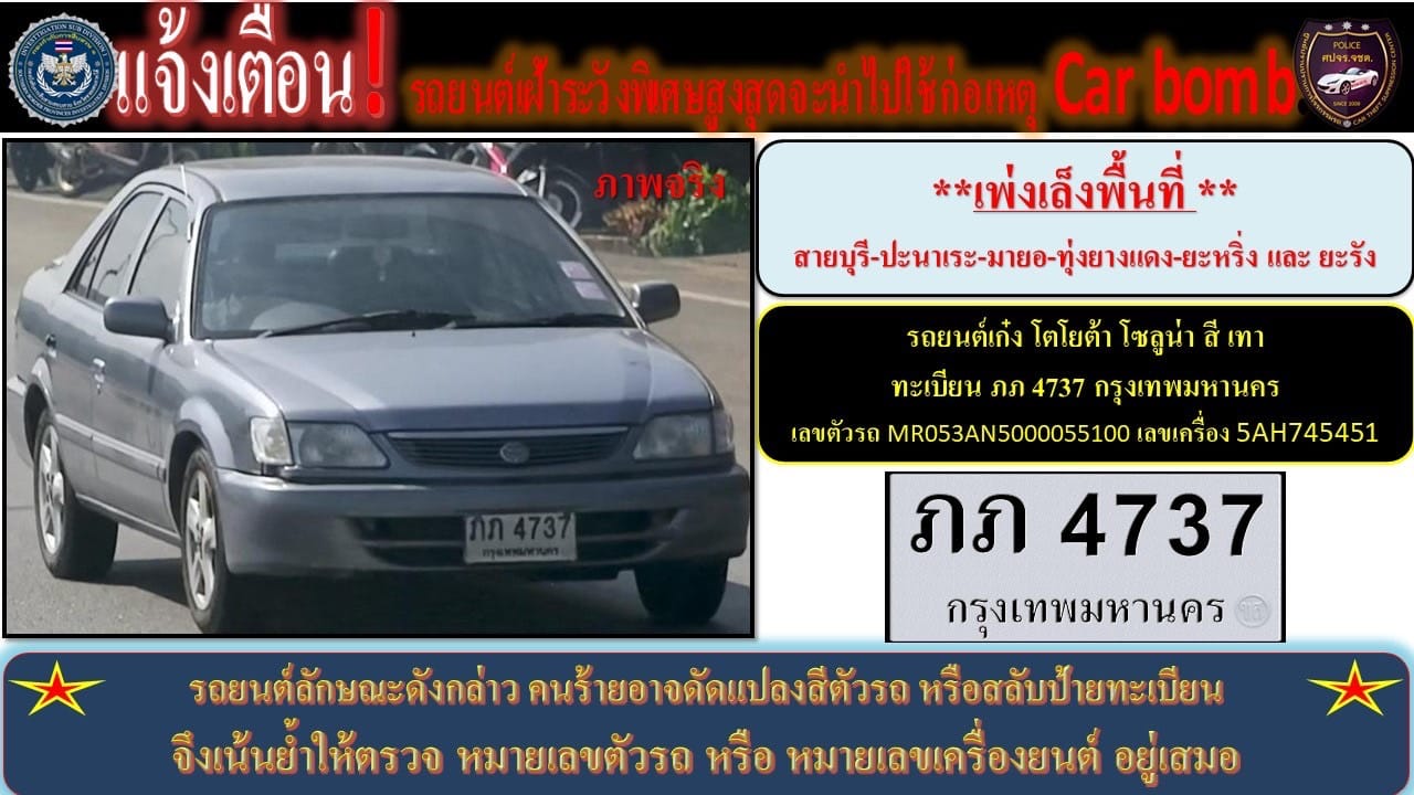 1. รถยนต์เก๋ง โตโยต้า โซลูน่า สีเทา ทะเบียน ภภ 4737 กทม.