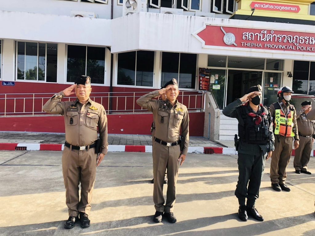 เมื่อวันที่ 31 ม.ค. 2567 เวลา 08.30 น. พ.ต.อ.ธรรมรัตน์ เพชรหนองชุม ผกก.สภ.เทพา พร้อมด้วย พ.ต.ท.สุรเดช เส็นยีหีม รอง ผกก.ป.สภ.เทพา , พ.ต.ท.วิสันต์ ดิสถาพร สวป.สภ.เทพา , ร.ต.อ.ชาตรี เพชรบุญวรรโณ รอง สวป.สภ.เทพา และข้าราชการตำรวจ ร่วมกล่าวคำปฏิญาณตนและอุดมคติตำรวจ ประชุมชี้แจงภารกิจ สรุปสถานการณ์ ข้อสั่งการของผู้บังคับบัญชา กำชับการปฏิบัติปล่อยแถวออกปฏิบัติหน้าที่