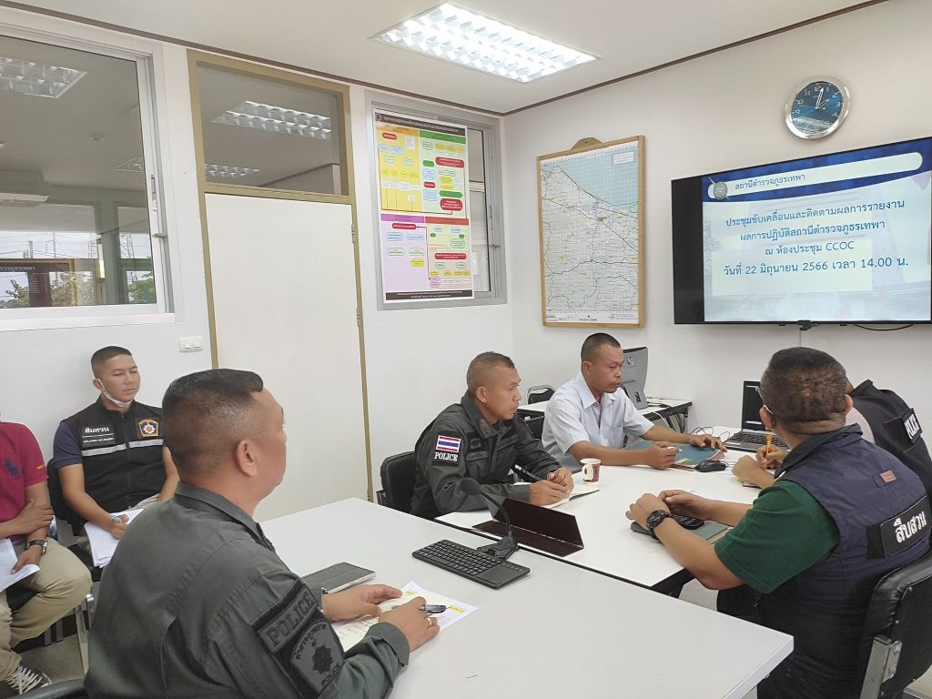 เมื่อวั้นที่ 22 มิ.ย. 2566 เวลา 14.00 น. พ.ต.อ.ธรรมรัตน์ เพชรหนองชุม ผกก.สภ.เทพา , พ.ต.ท.สุรเดช เส็นยีหีม รอง ผกก.ป.สภ.เทพา , พ.ต.ท.วรรณพงษ์ วงษ์สุวรรณ รอง ผกก.สส.สภ.เทพา , พ.ต.ต.บุญธรรม มากมณี สว.สส.สภ.เทพา พร้อมด้วยเจ้าหน้าที่ฝ่ายอำนวยการที่เกี่ยวข้อง ร่วมประชุมขับเคลื่อนและติดตามผลการรายงานผลการปฏิบัติของสถานี ณ ห้องประชุม ศปก.สภ.เทพา